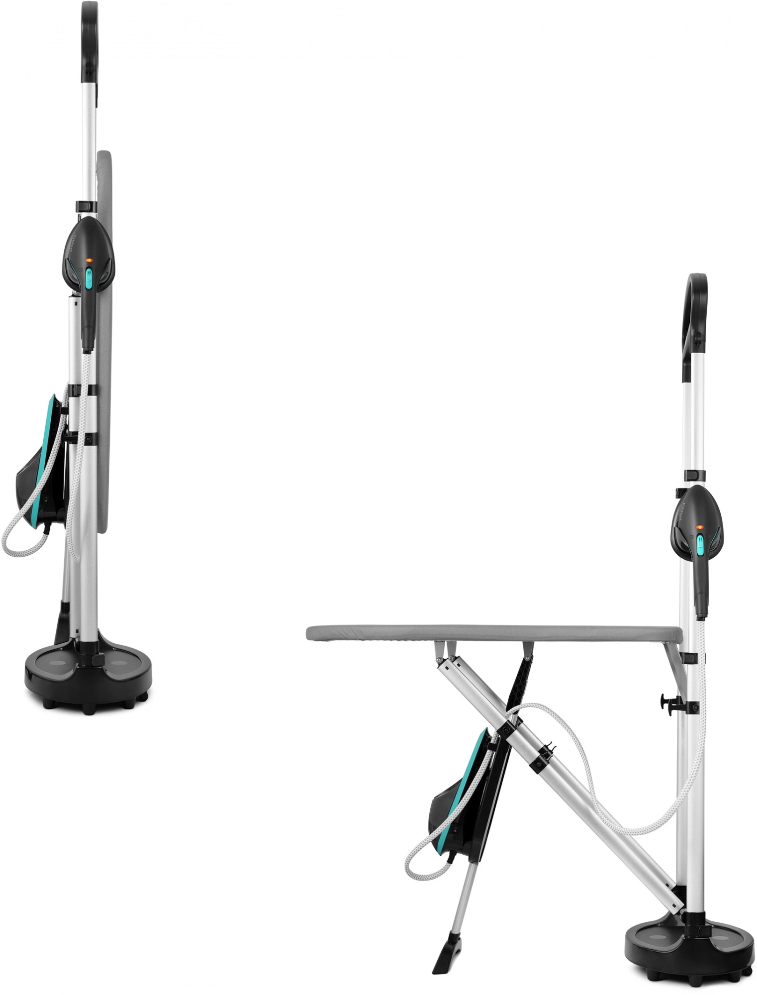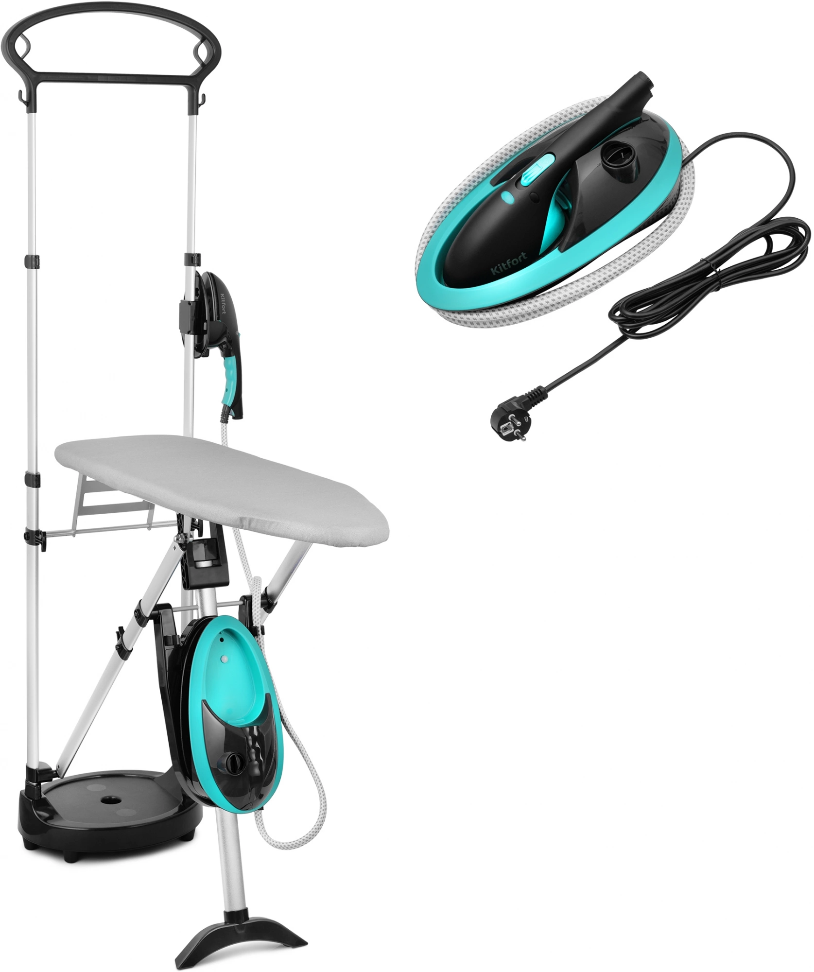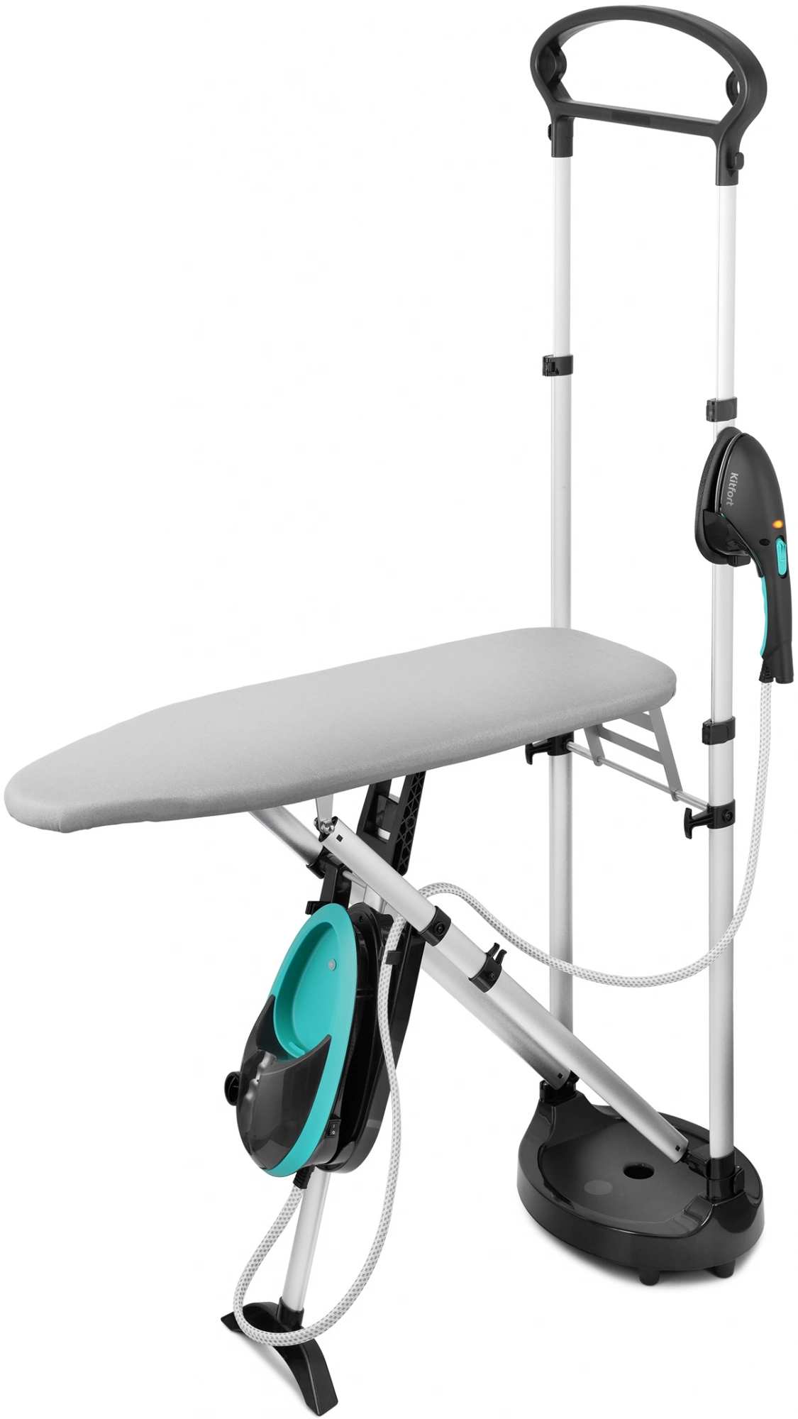 Гладильная система КТ-992 – это современное устройство для глажки, совмещающее утюг, раскладывающуюся гладильную доску и отпариватель. Она позволяет прогладить, а заодно и продезинфицировать, любые вещи и изделия из текстиля даже со сложной текстурой.