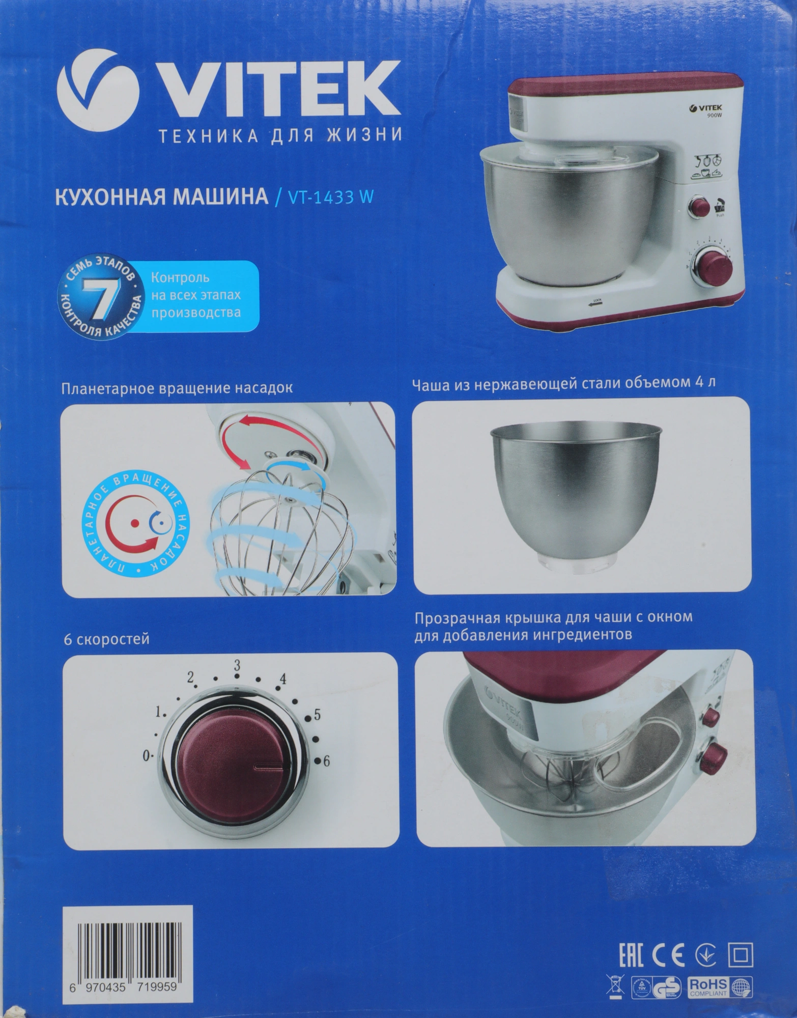 Миксер планетарный VITEK VT-1438 достойна того, чтобы занять почетное место на вашей кухне. Всего однажды увидев этот прибор в деле, вы не захотите от него отказываться.