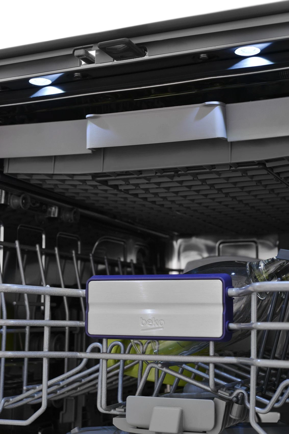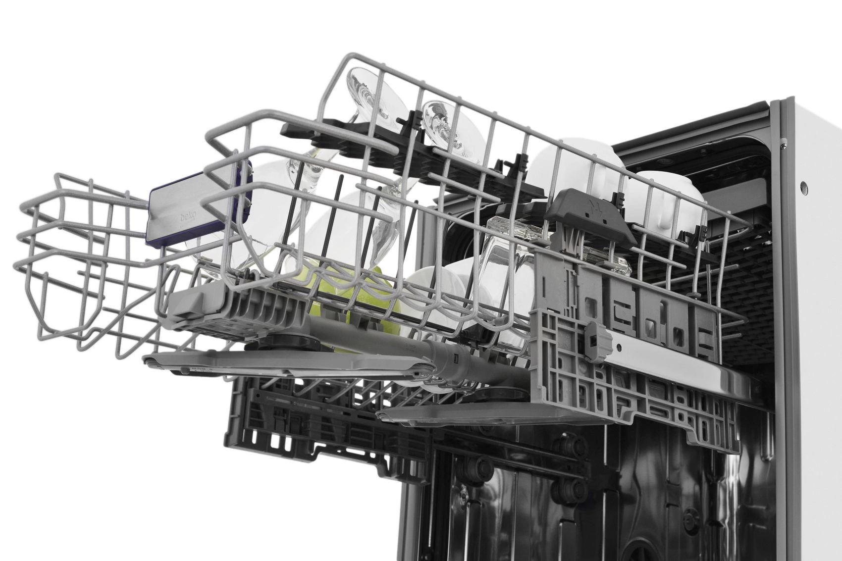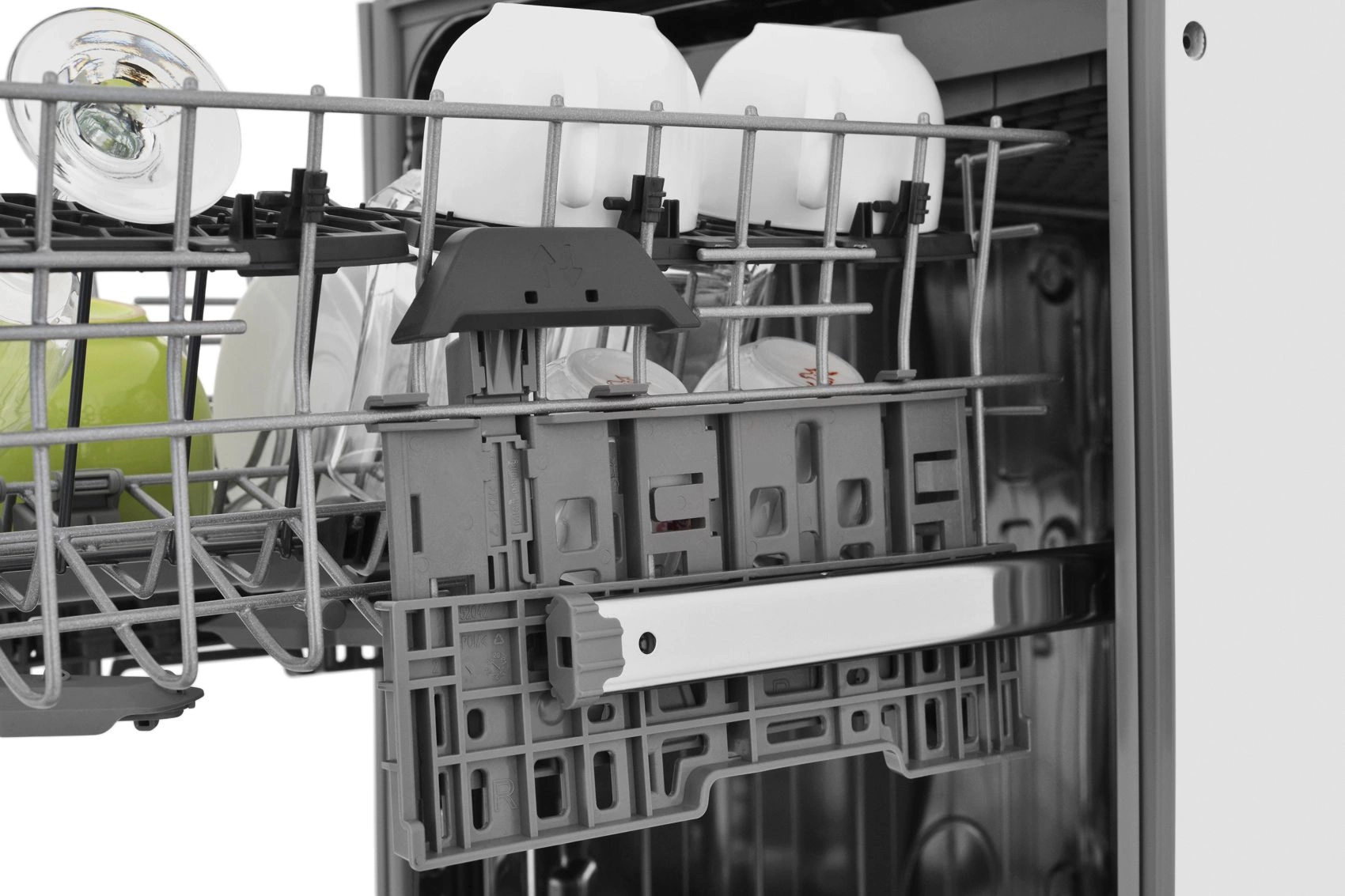 корзина для столовых приборов, освещение, разбрызгиватель над верхней корзиной, регулируемая по высоте корзина для посуды, складные держатели тарелок