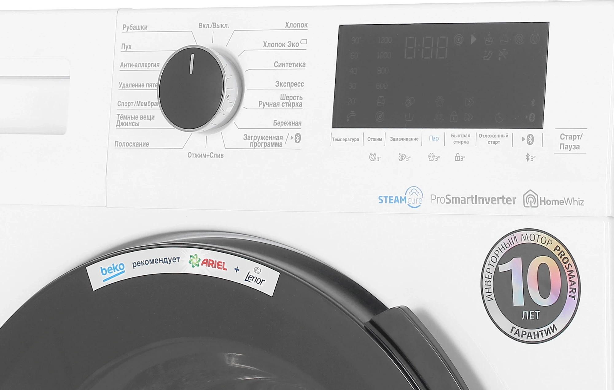 блокировка от случайного нажатия, дисплей, защита от детей, защита от скачков напряжения, контроль уровня пены, сенсорная панель управления, таймер отсрочки запуска, управление со смартфона