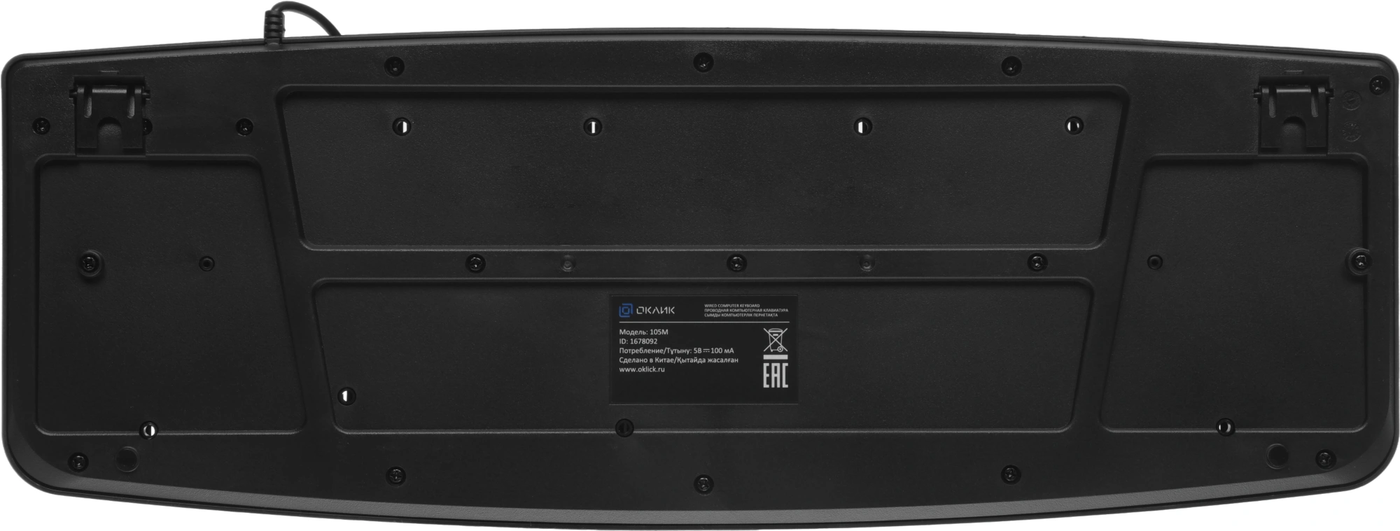 Офисная клавиатура Oklick 105M выглядит строго и аккуратно и обладает хорошей эргономикой. Влагозащитный корпус убережет девайс от поломок из-за попадания брызг и капель, а антифрикционные прорезиненные ножки делают устройство более устойчивым и исключат скольжение по поверхности стола. Модель оснащена 1,8-метровым USB-кабелем. Он достаточно длинный и позволит удобно подключать устройство к ПК.