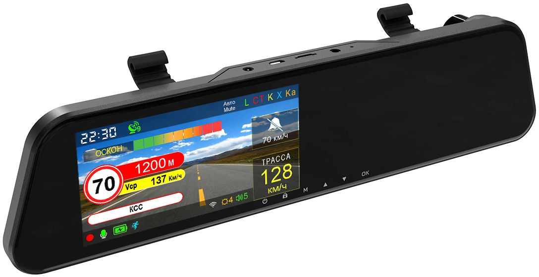 В виде зеркала заднегл вида, Wi-Fi, возможность подключения второй камеры