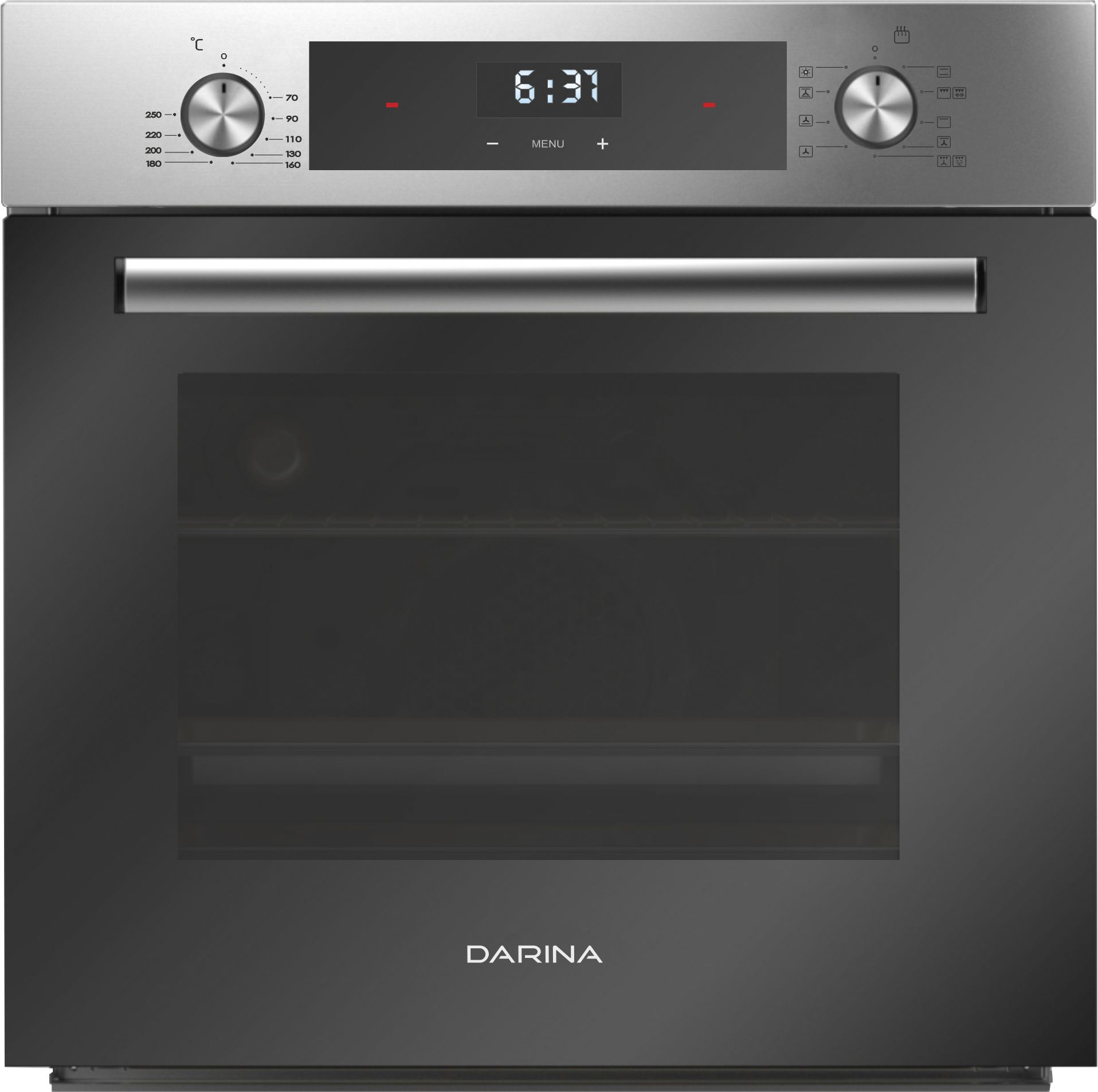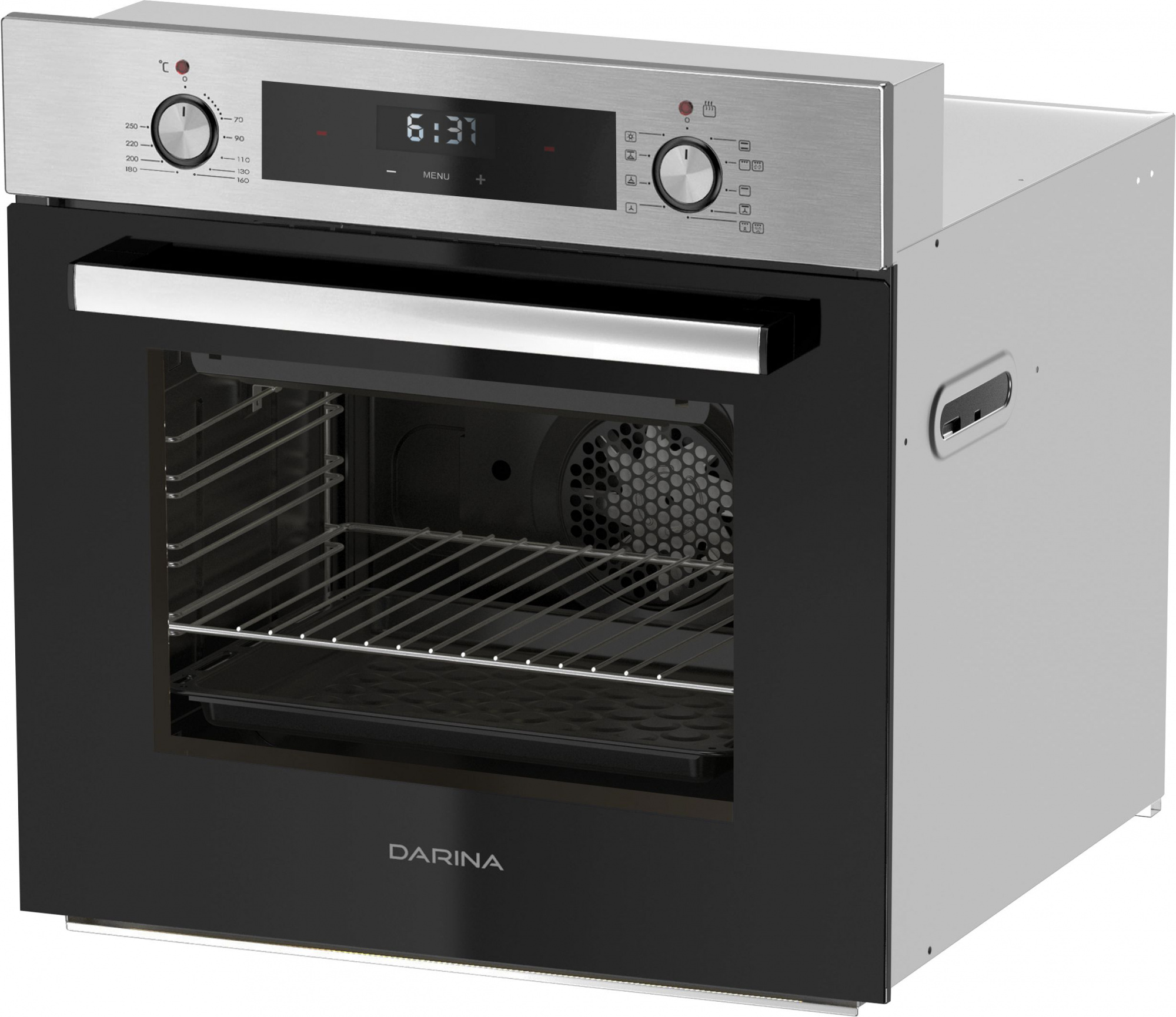 вентилятор охлаждения, дисплей, полностью стеклянная внутренняя поверхность дверцы духовки, утапливаемые переключатели