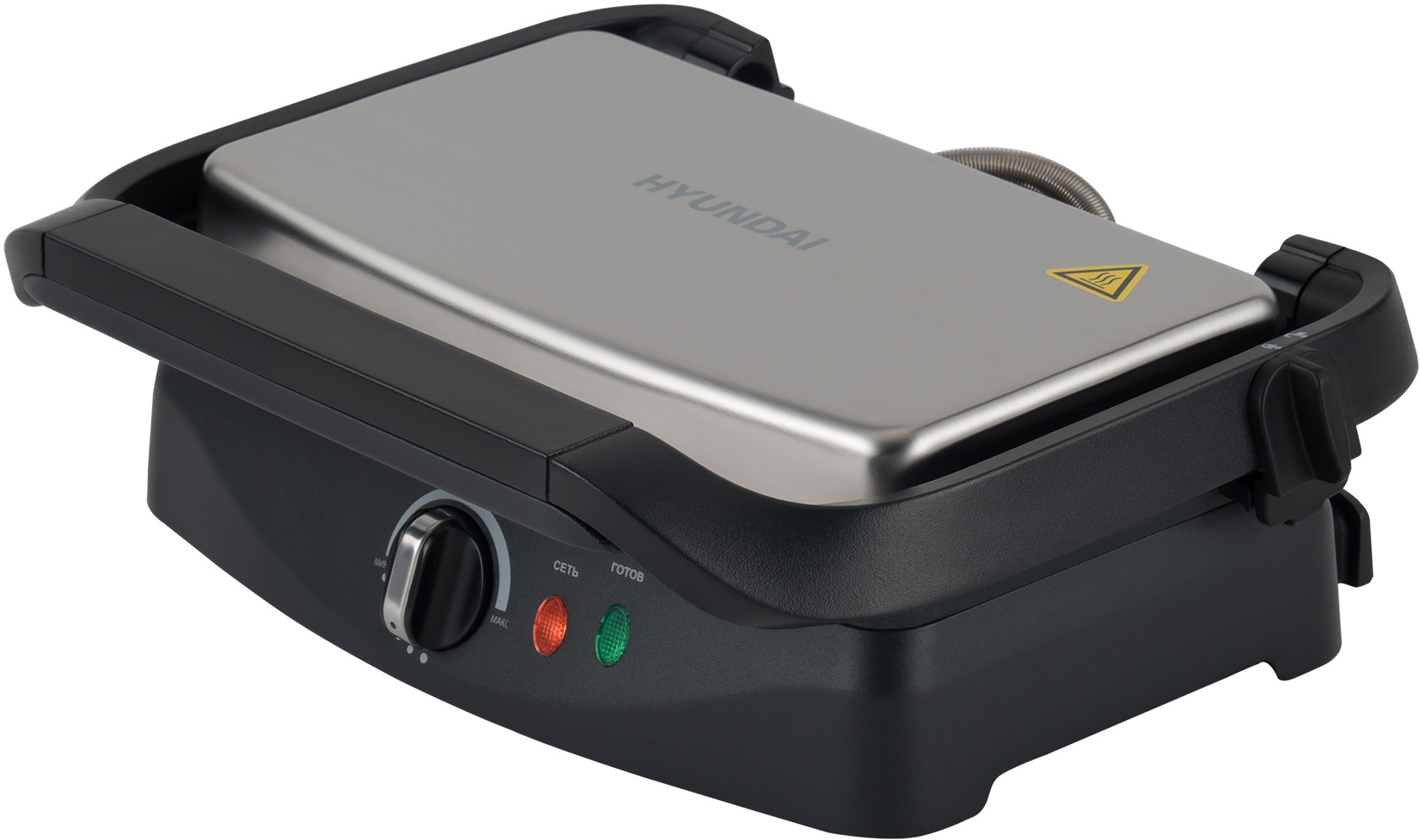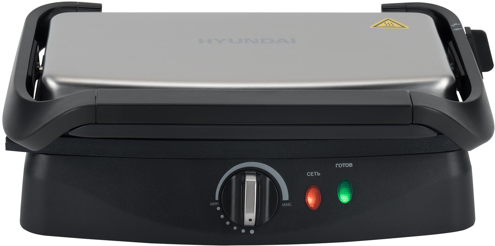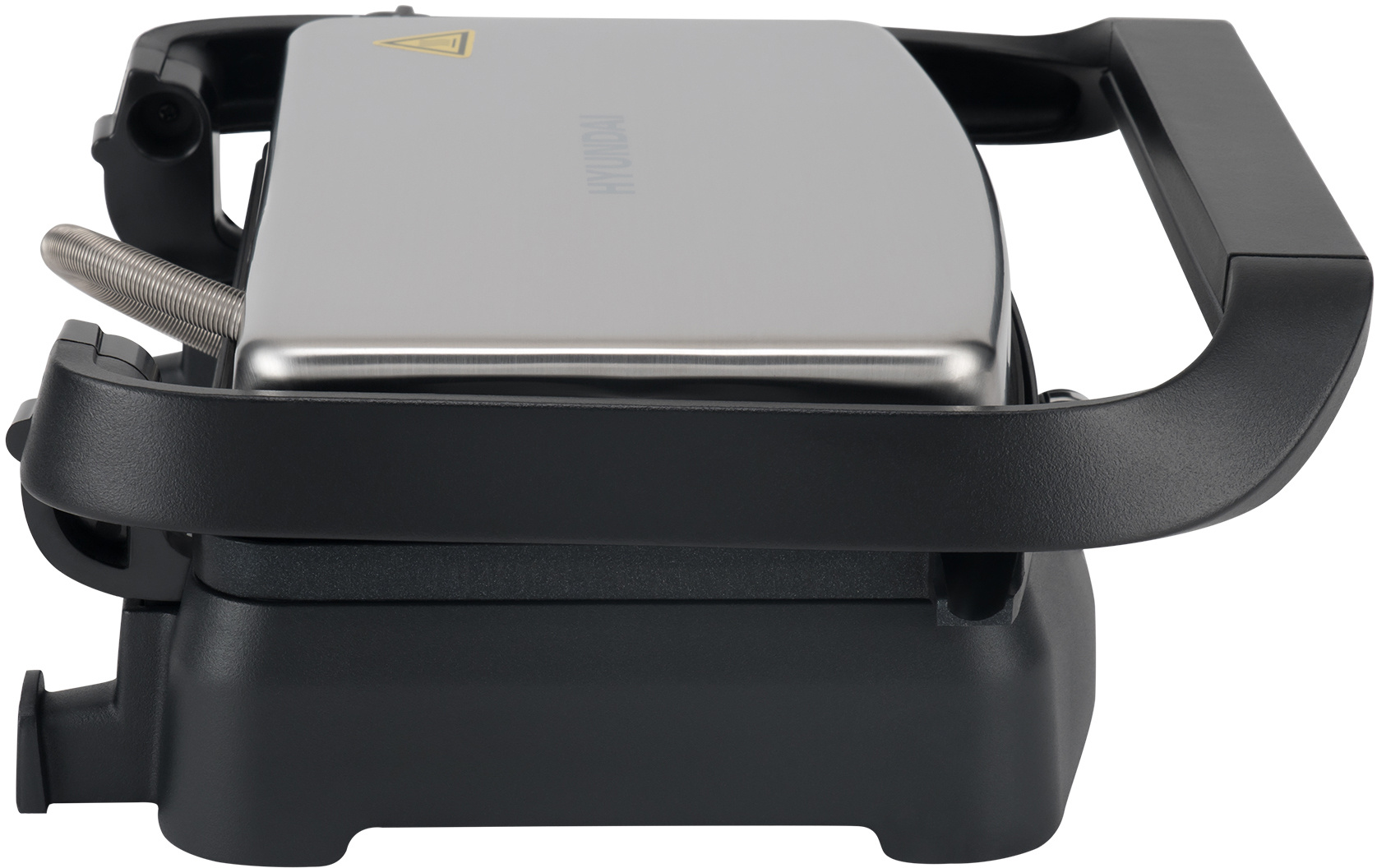 Эргономичный домашний гриль Hyundai HYG-2073 ничем не уступает полноразмерному, который занимает много места и требует открытого пространства.