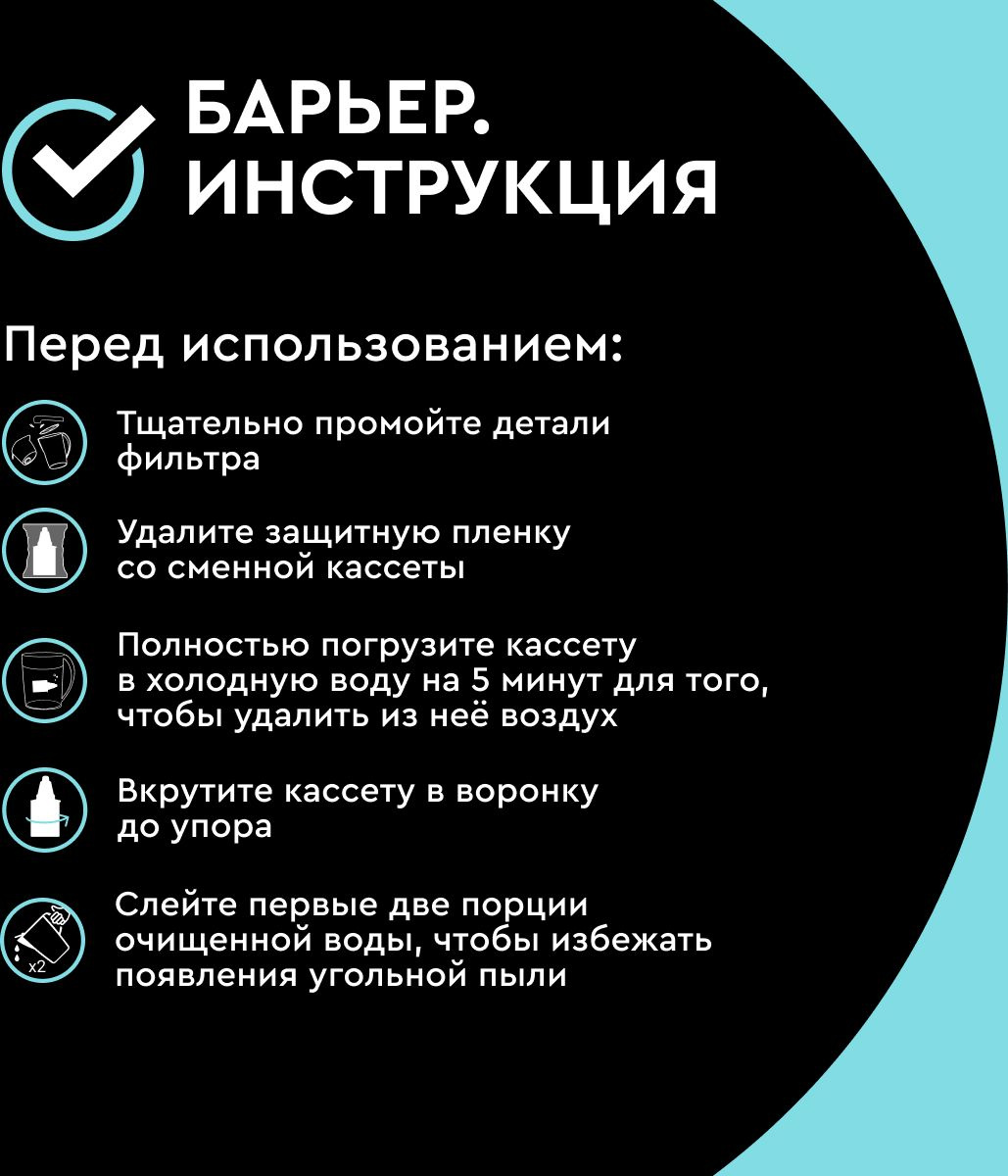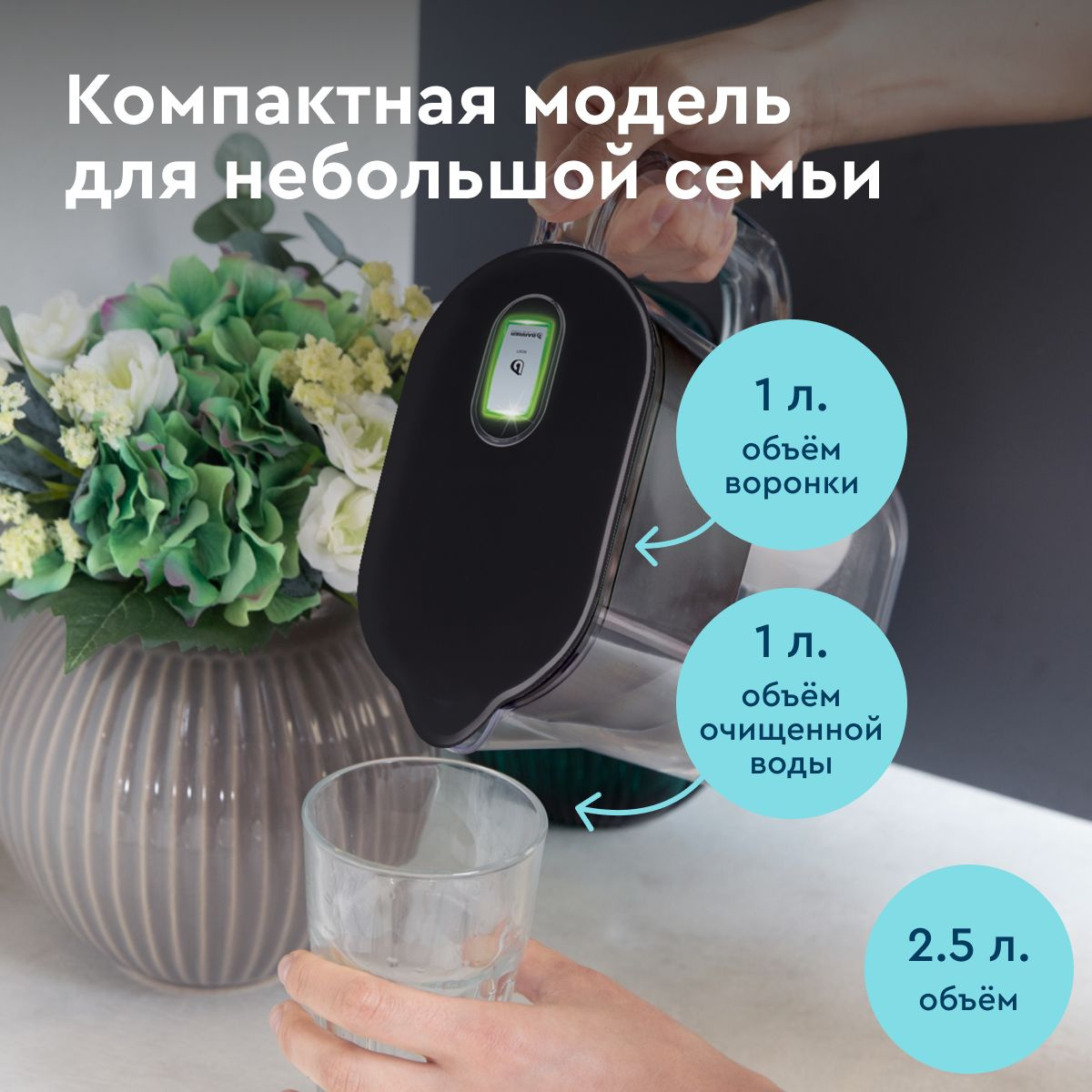 В комплектации кассета Стандарт, которая производит базовую очистку водопроводной воды от хлора и других вредных примесей. Устраняет посторонние привкусы и запахи. Электронный индикатор ресурса.