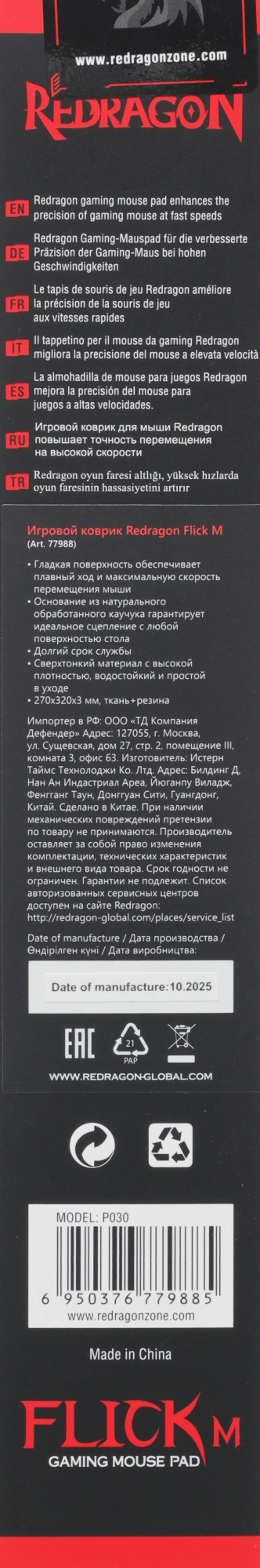 Компактный современный игровой ковер с прошитыми краями и гладким влагоотталкивающим покрытием Speed для максимальной скорости перемещения мыши. Уникальная резиновая основа не даст коврику скользить по столу, улучшенная формула скольжения идеальна для динамичных игр.