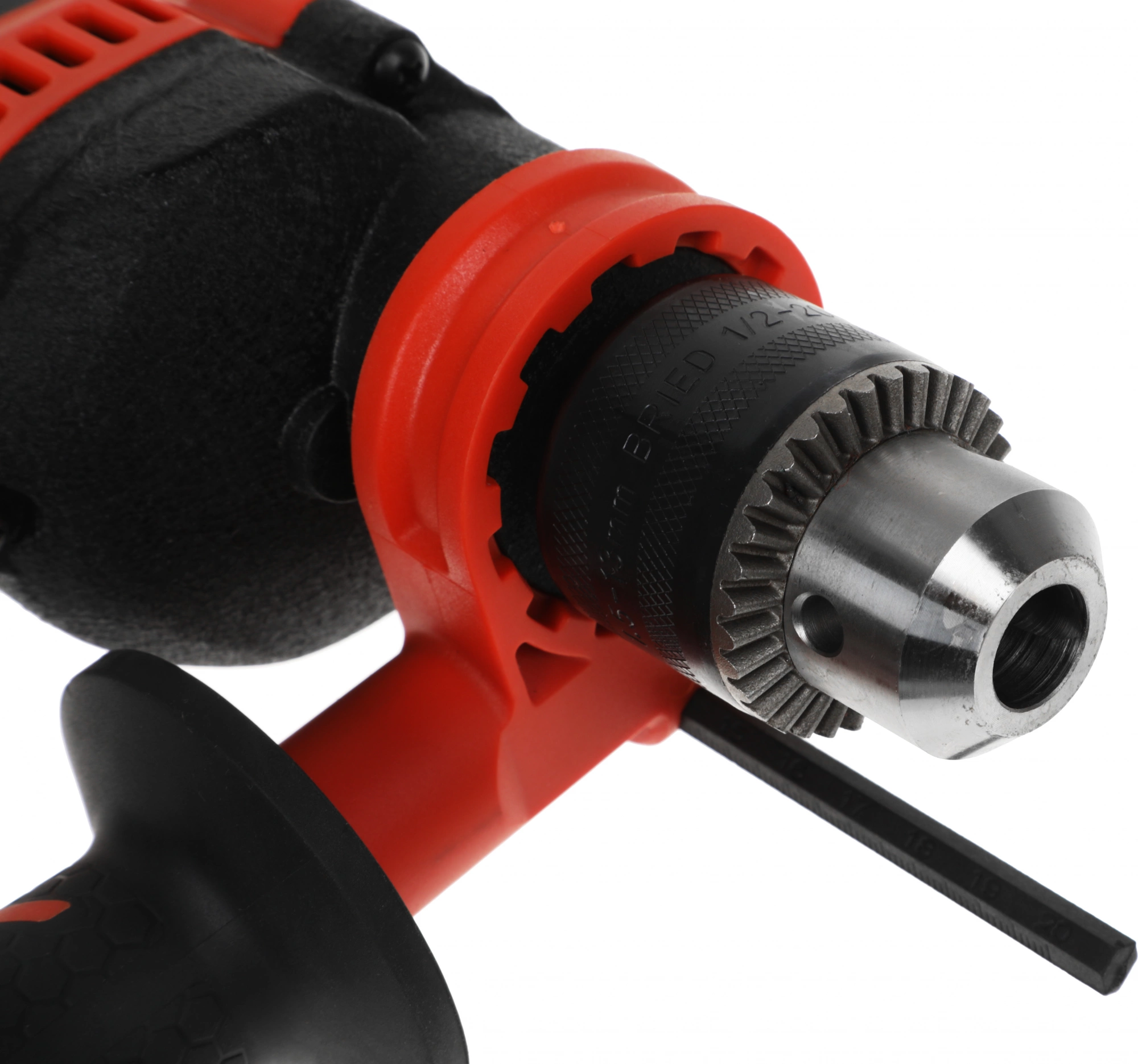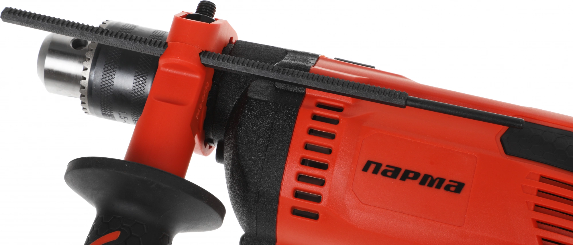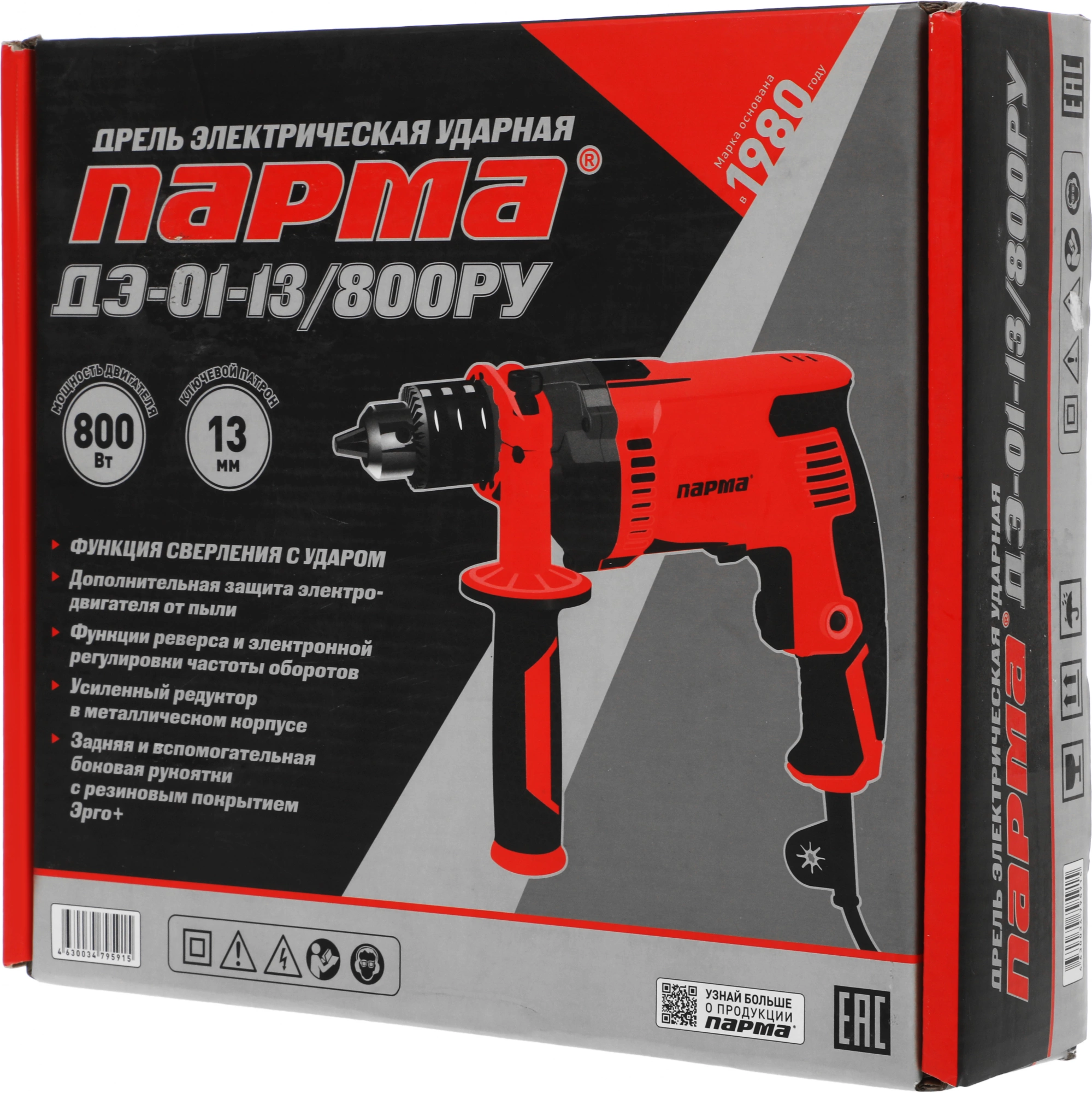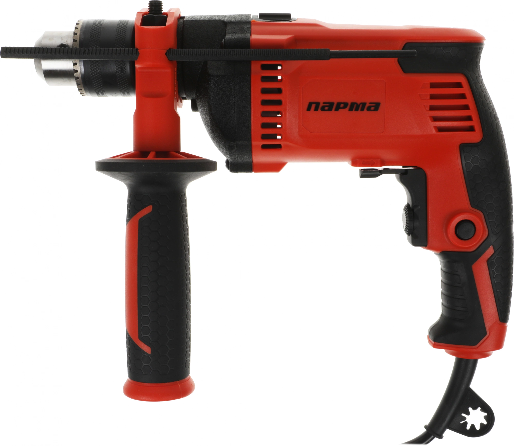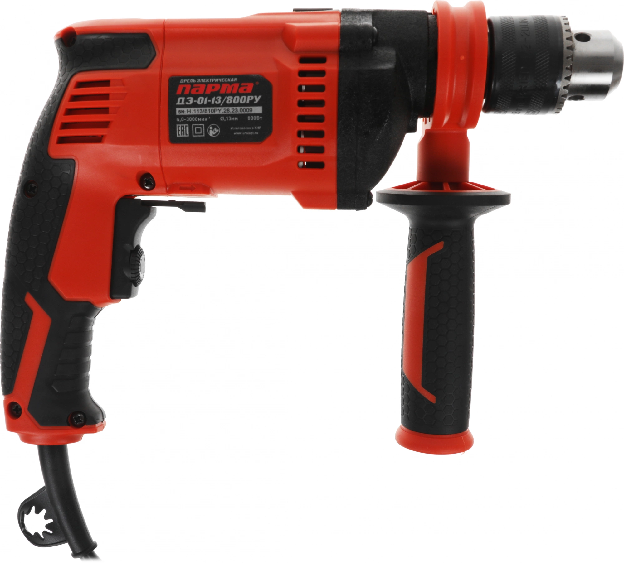 Функция сверления с ударом. Дополнительная защита электродвигателя от пыли. Функции реверса и электронной регулировки частоты оборотов. Усиленный редуктор в металлическом корпусе. Задняя и вспомогательная боковая рукоятки с резиновым покрытием Эрго+.
