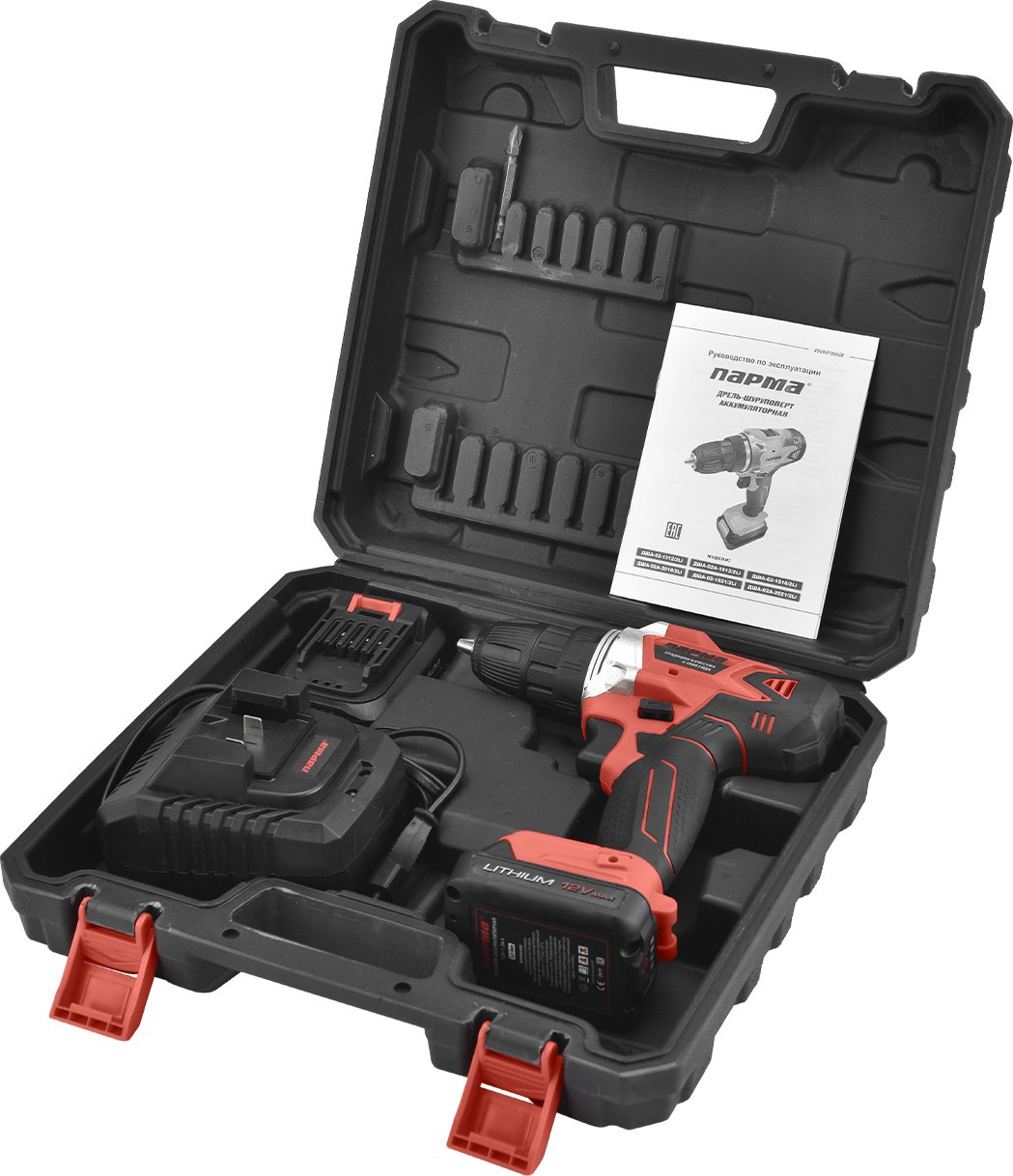 Индикатор уровня заряда аккумулятора. Эргономичная рукоятка с противоскользящим покрытием ERGOgrip. Плавная регулировка скорости вращения. Наличие функции реверса. LED подсветка рабочей зоны. 2 Li-ion аккумулятора (отсутствие эффекта памяти, саморазряда). Интеллектуальное зарядное устройство.