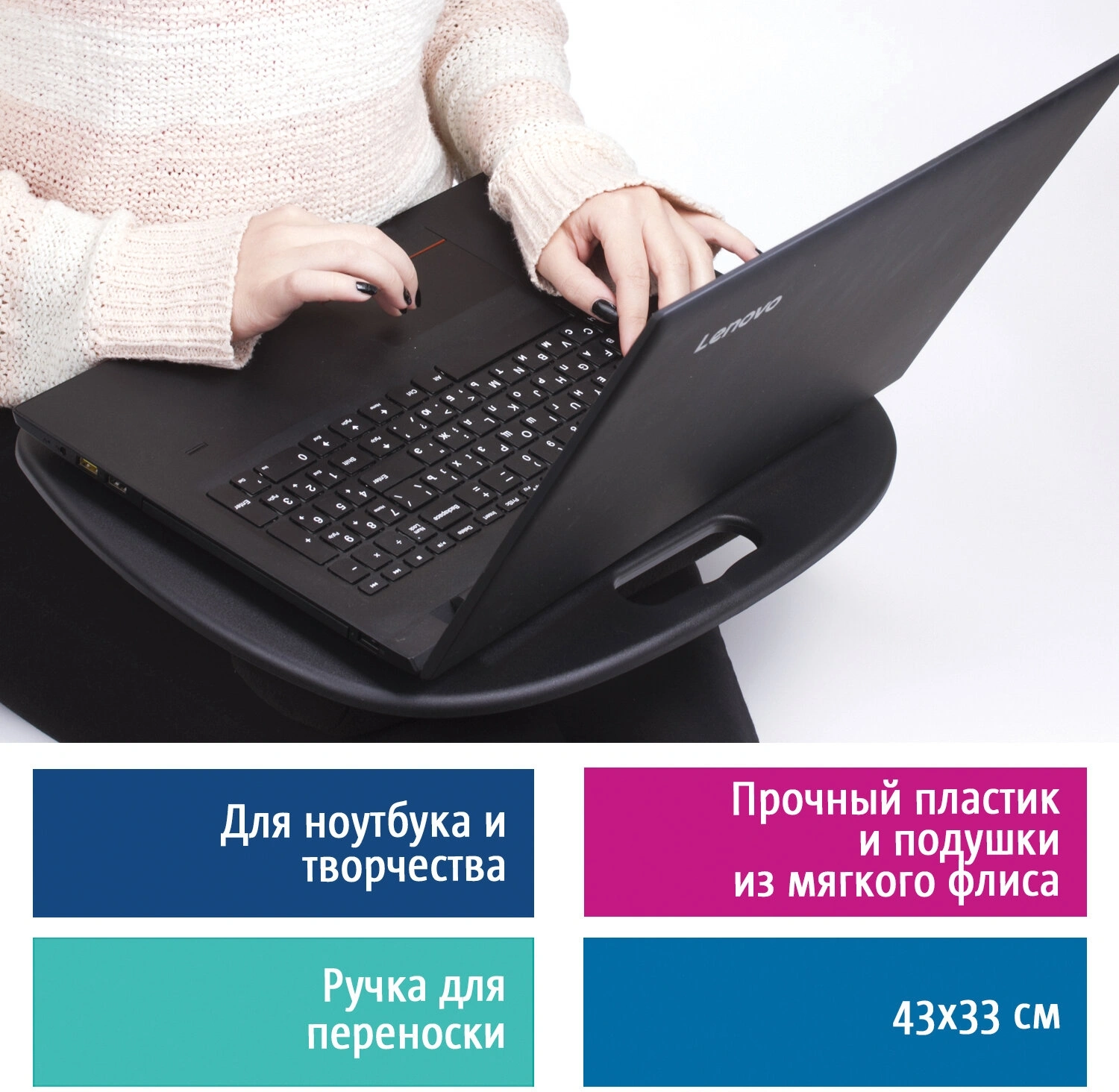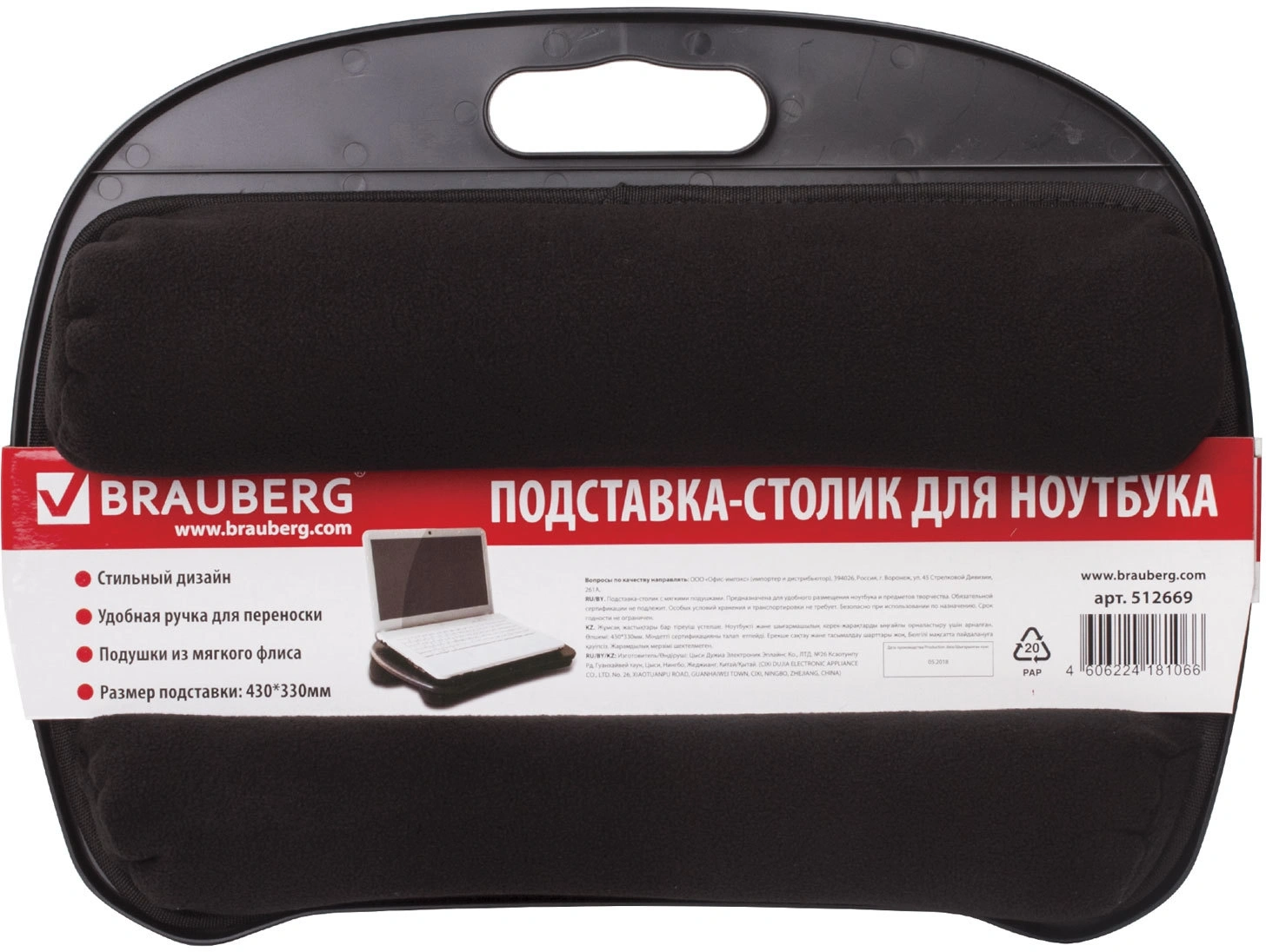 Подставка-столик BRAUBERG позволяет с комфортом работать на ноутбуке, писать и заниматься творчеством в любом месте! Изготовлена из прочного ABS-пластика. Снабжена 2-мя подушками из мягкого флиса для комфортного расположения на коленях. Для удобной транспортировки предусмотрена ручка.