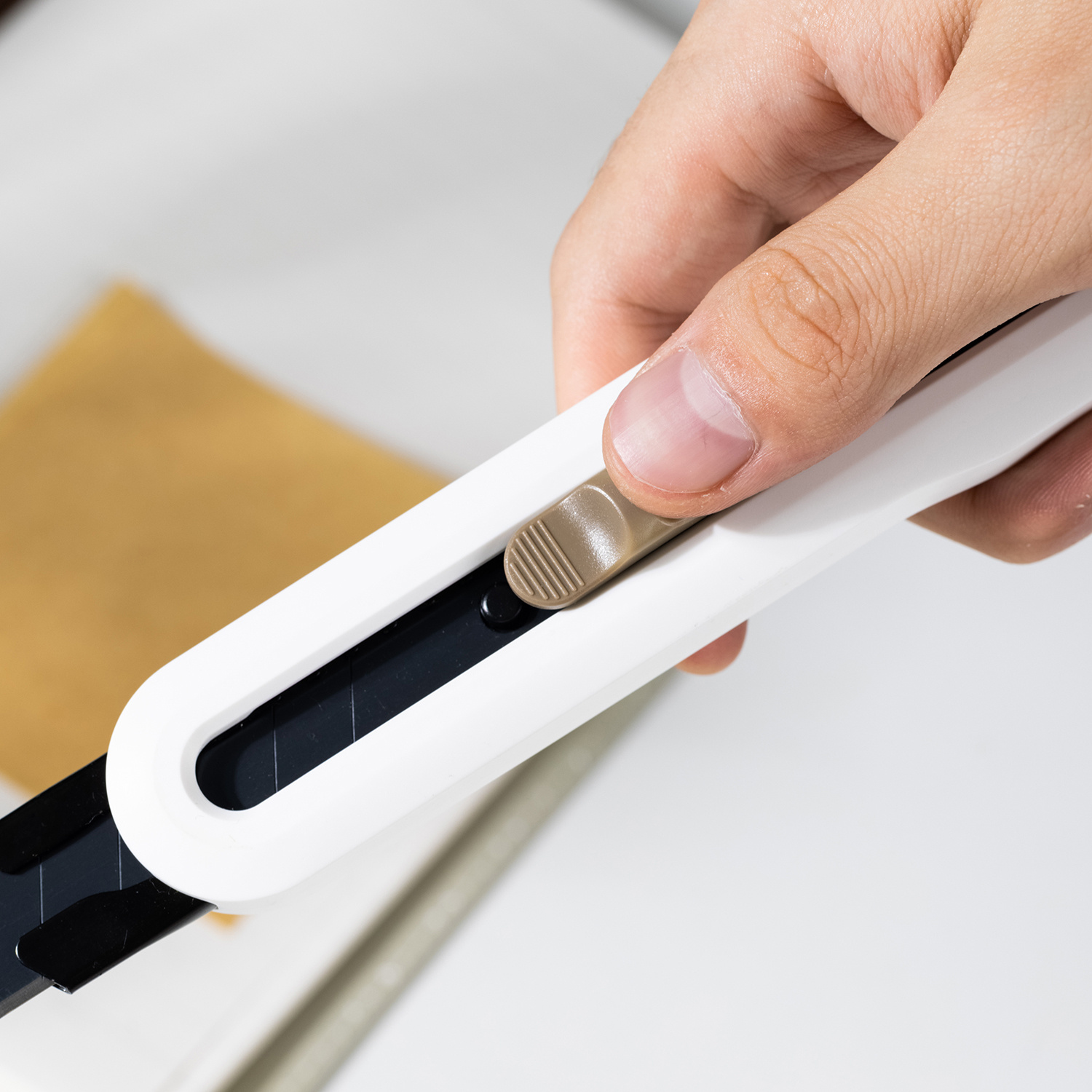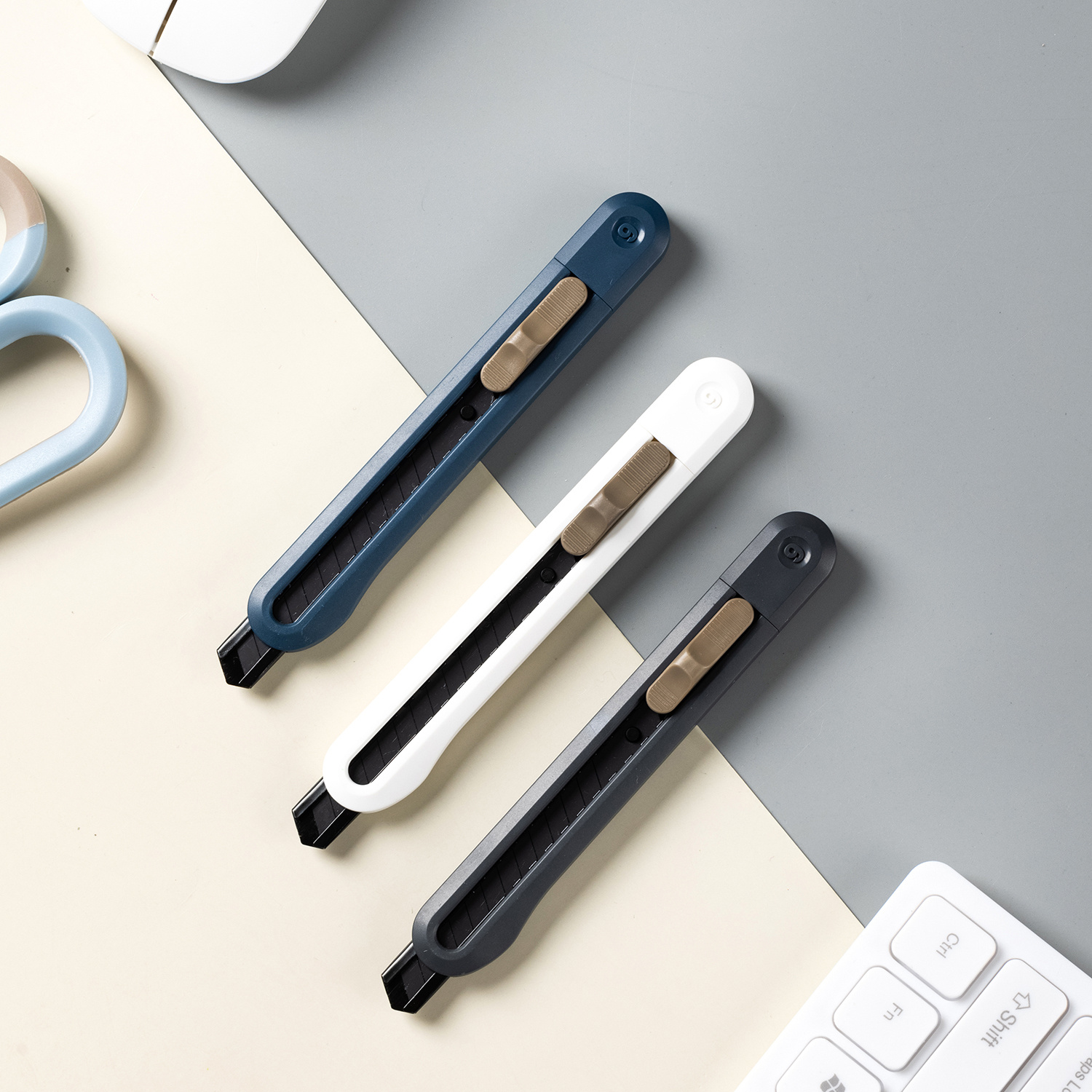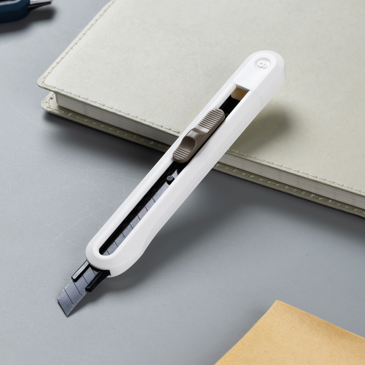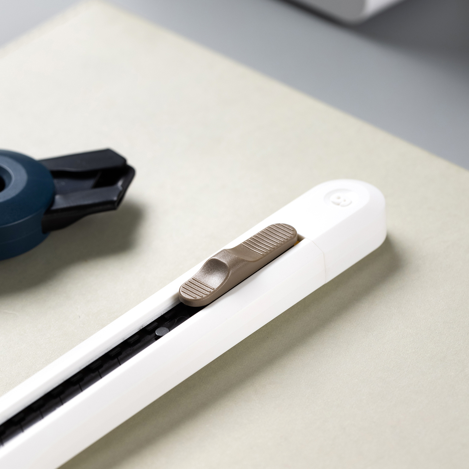 Нож канцелярский Deli ENS063-WT Nusign шир.лез.9мм фиксатор сталь белый