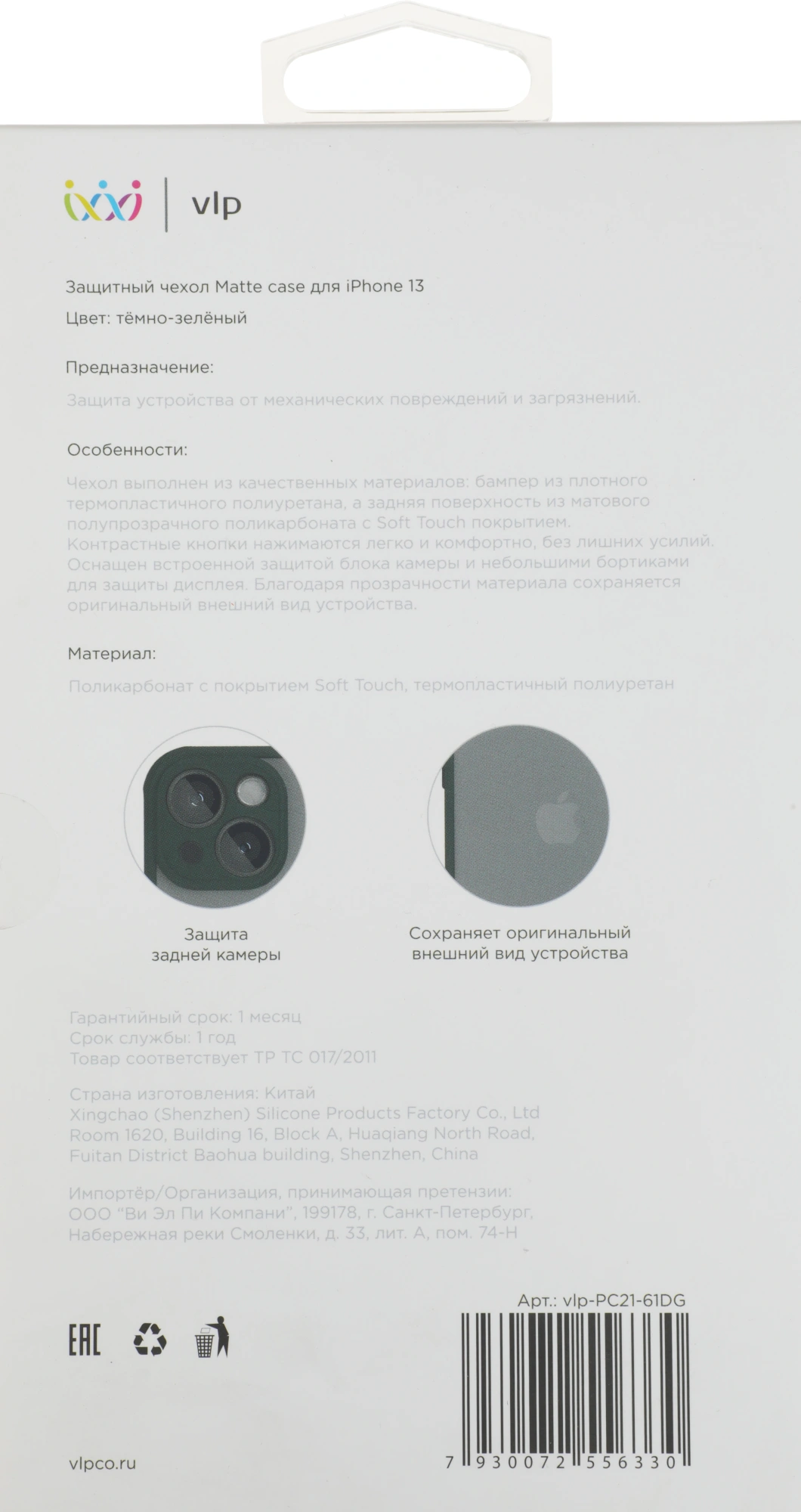 Чехол (клип-кейс) VLP для Apple iPhone 13 VLP-PC21-61DG