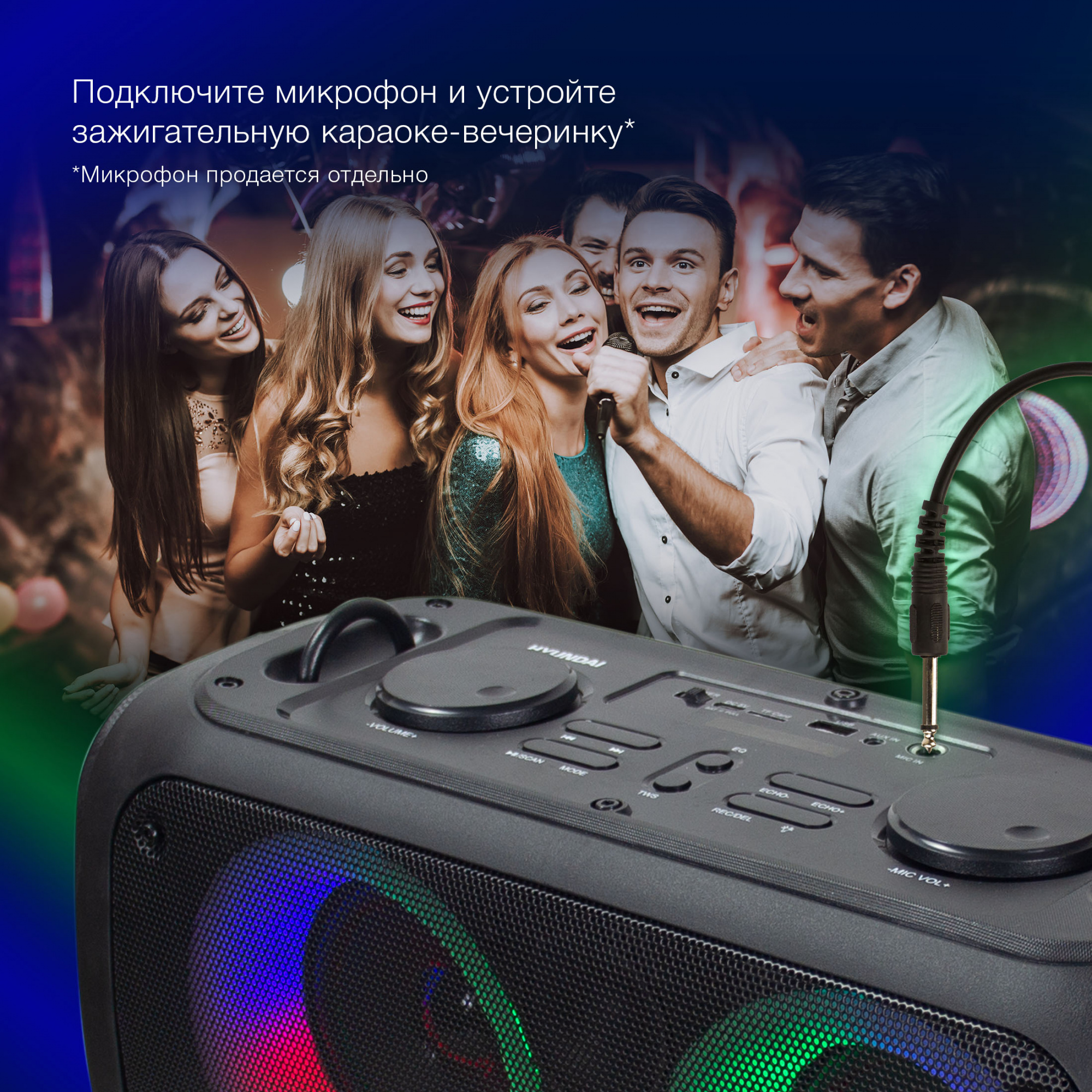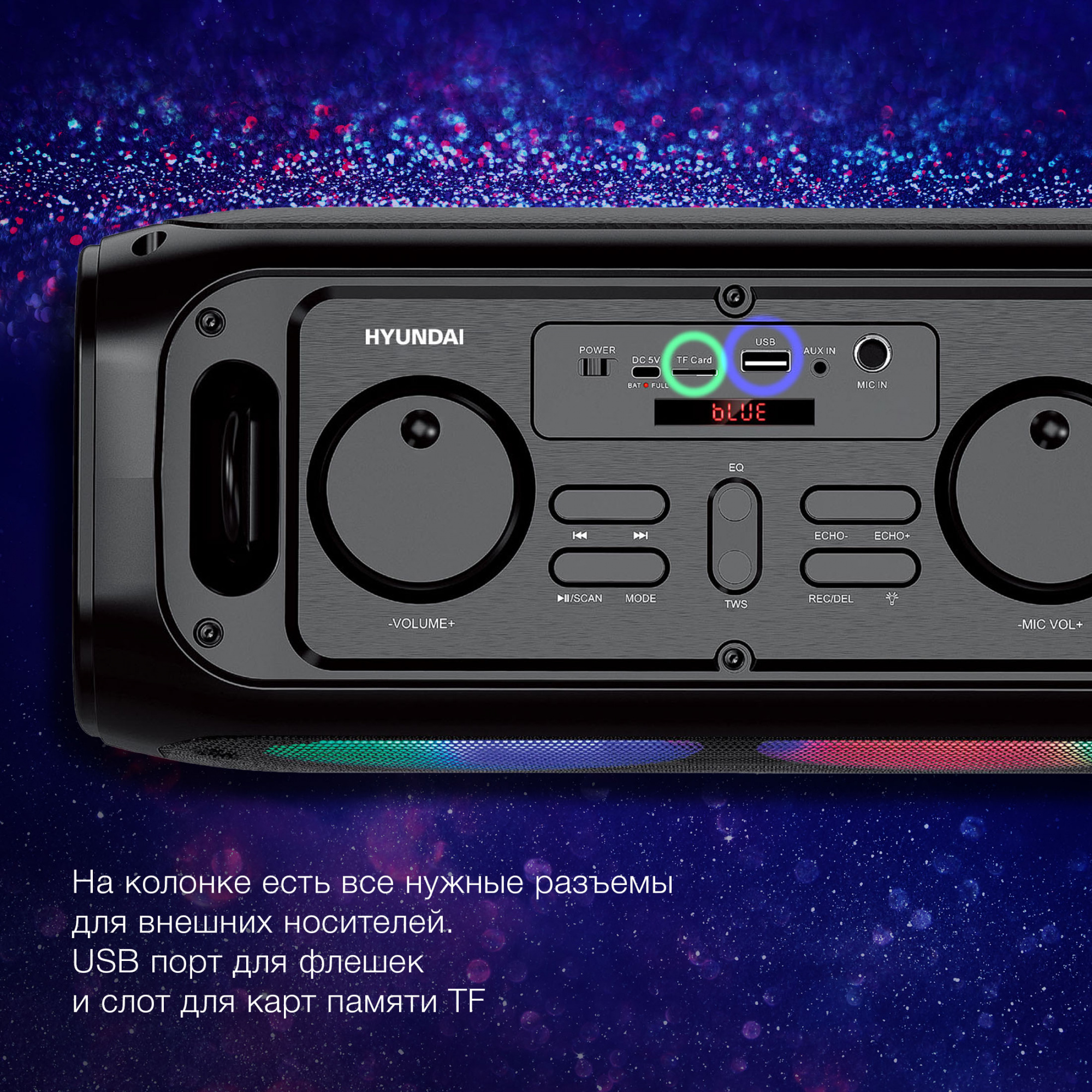Портативная акустика Hyundai H-PS1030 – это полноценный мультимедийный центр с яркой RGB-подсветкой.