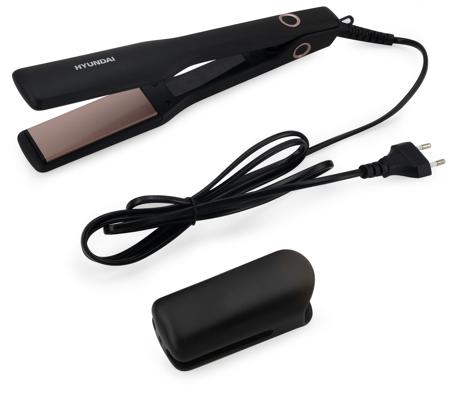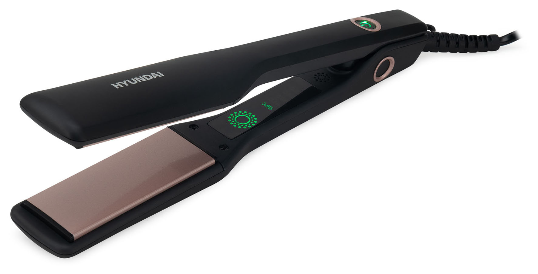 На рукоятке выпрямителя расположен индикатор включения и выключения, а также эргономичная петля для хранения в подвешенном состоянии. Шнур крепится к Hyundai H-HS1275 с помощью шарниров, что значительно повышает свободу манипуляций и защищает кабель от перетирания и перекручивания.