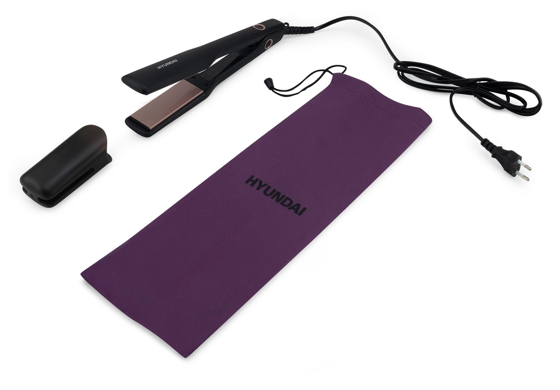 В комплекте с данной моделью идёт удобный чехол для перевозки и хранения прибора. Hyundai H-HS1275 можно взять с собой в командировку или дальнюю поездку, потому что выпрямитель не займёт много места и имеет небольшой вес.