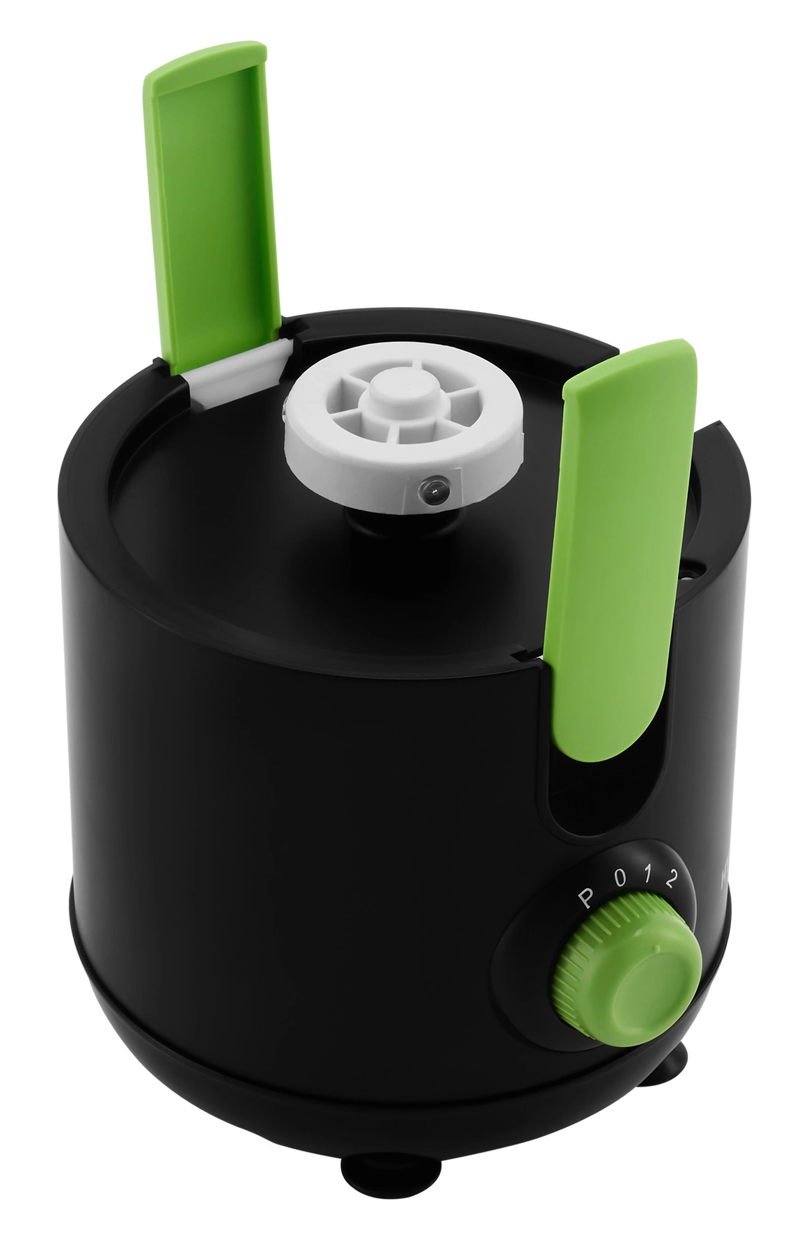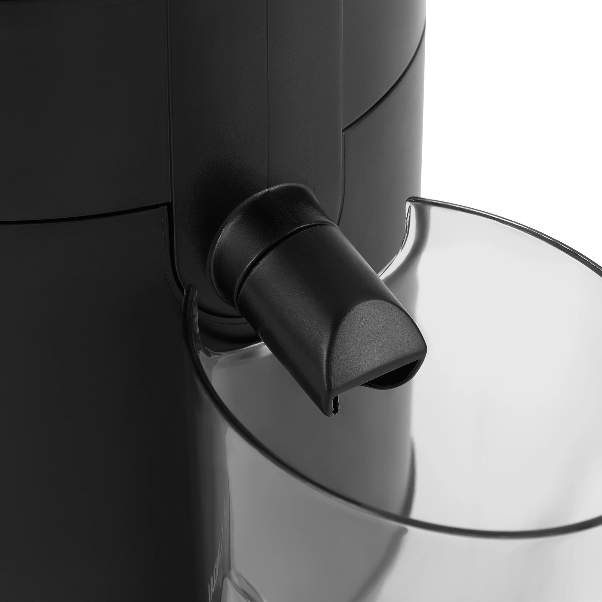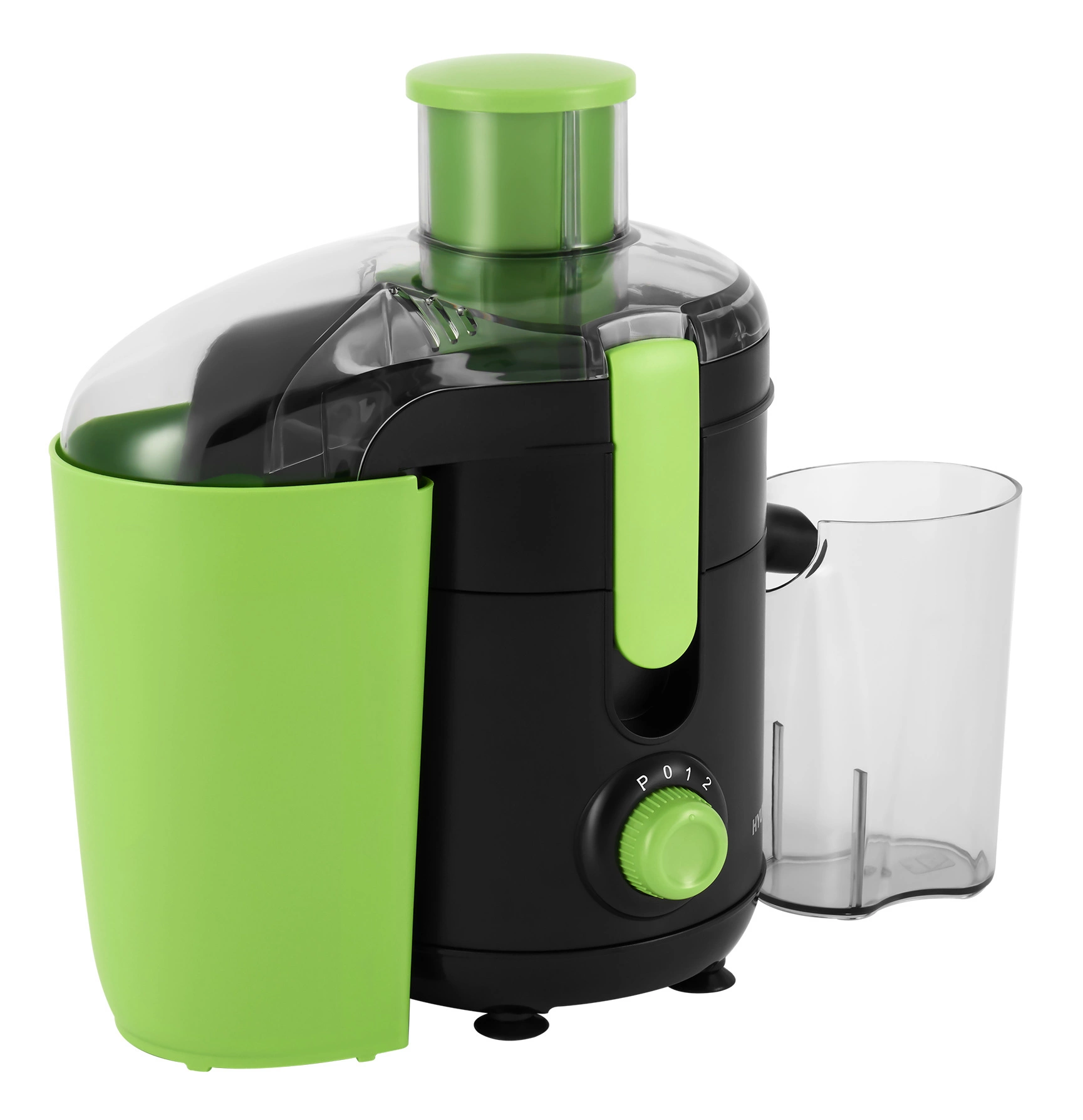 Мощность прибора составляет 500 Вт, а доступных скоростей в нём две – этого достаточно, чтобы получить сок из большинства овощей и фруктов. Устройство использует центробежную силу, чтобы отделять мякоть, для неё есть отдельный резервуар на 1000 мл. Разовый объём сока, на который рассчитана соковыжималка, 400 мл – это стандартный стакан.