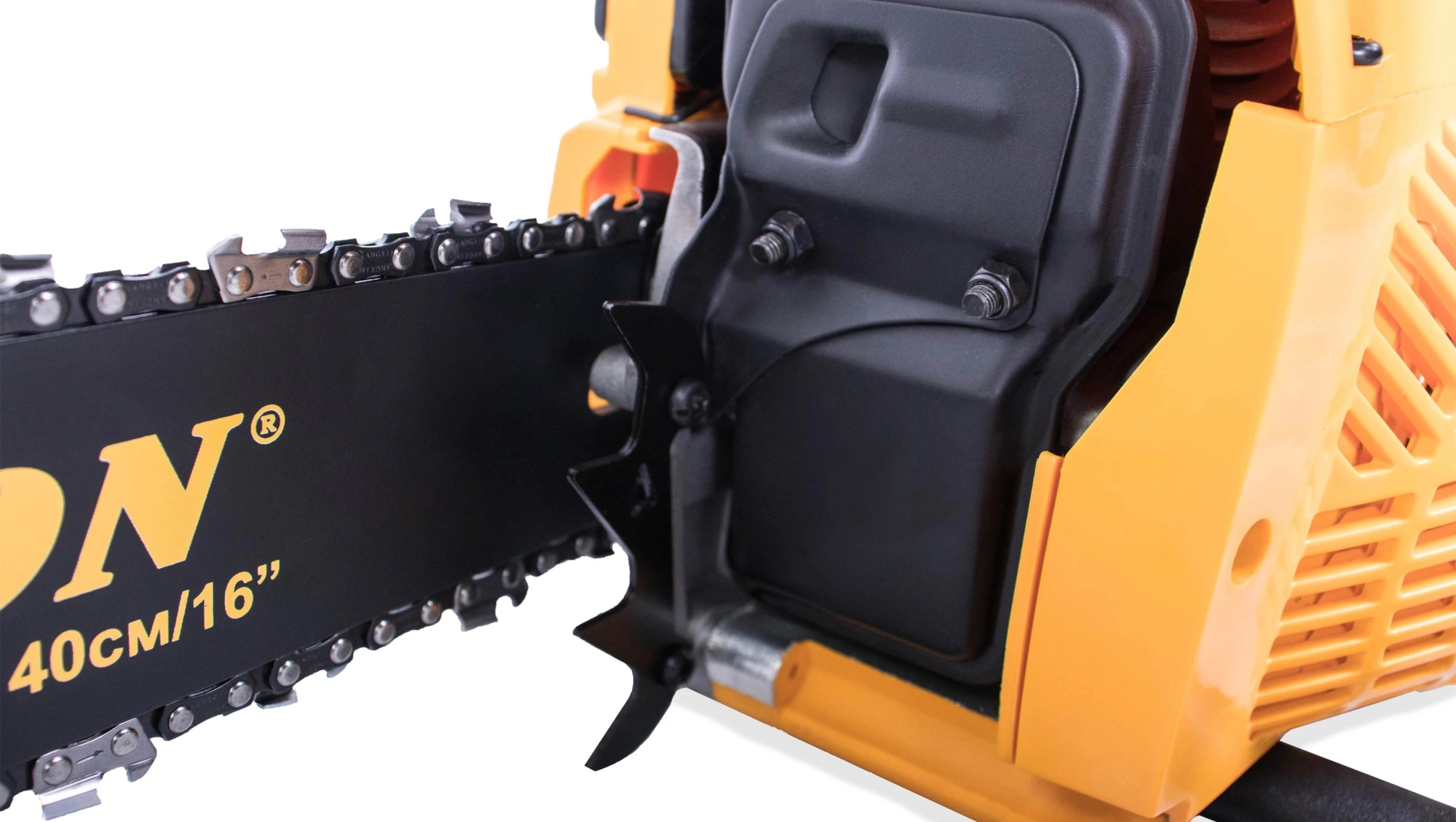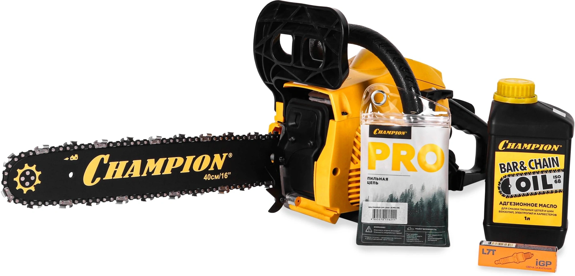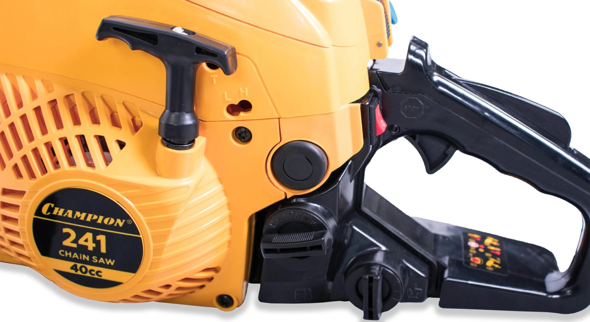 Бензопила Champion A241-16" используется при валке деревьев, обрезке ветвей, для распиливания заготовок из древесины.