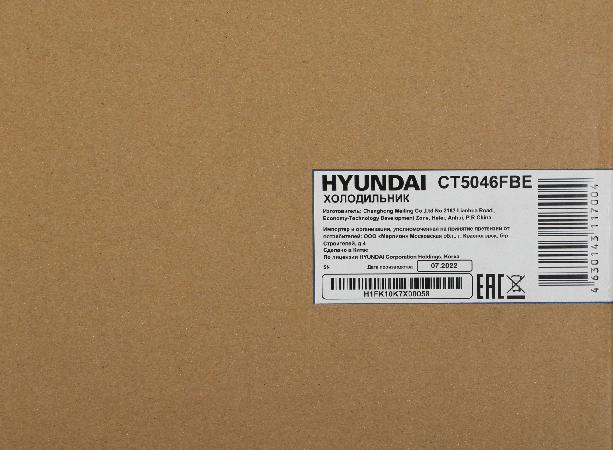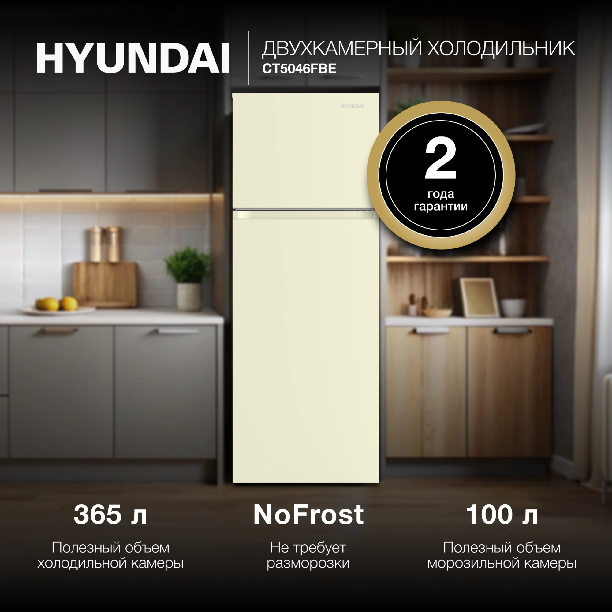 Двухкамерный холодильник Hyundai CT5046FBE – эргономичное решение для поддержания свежести продуктов.