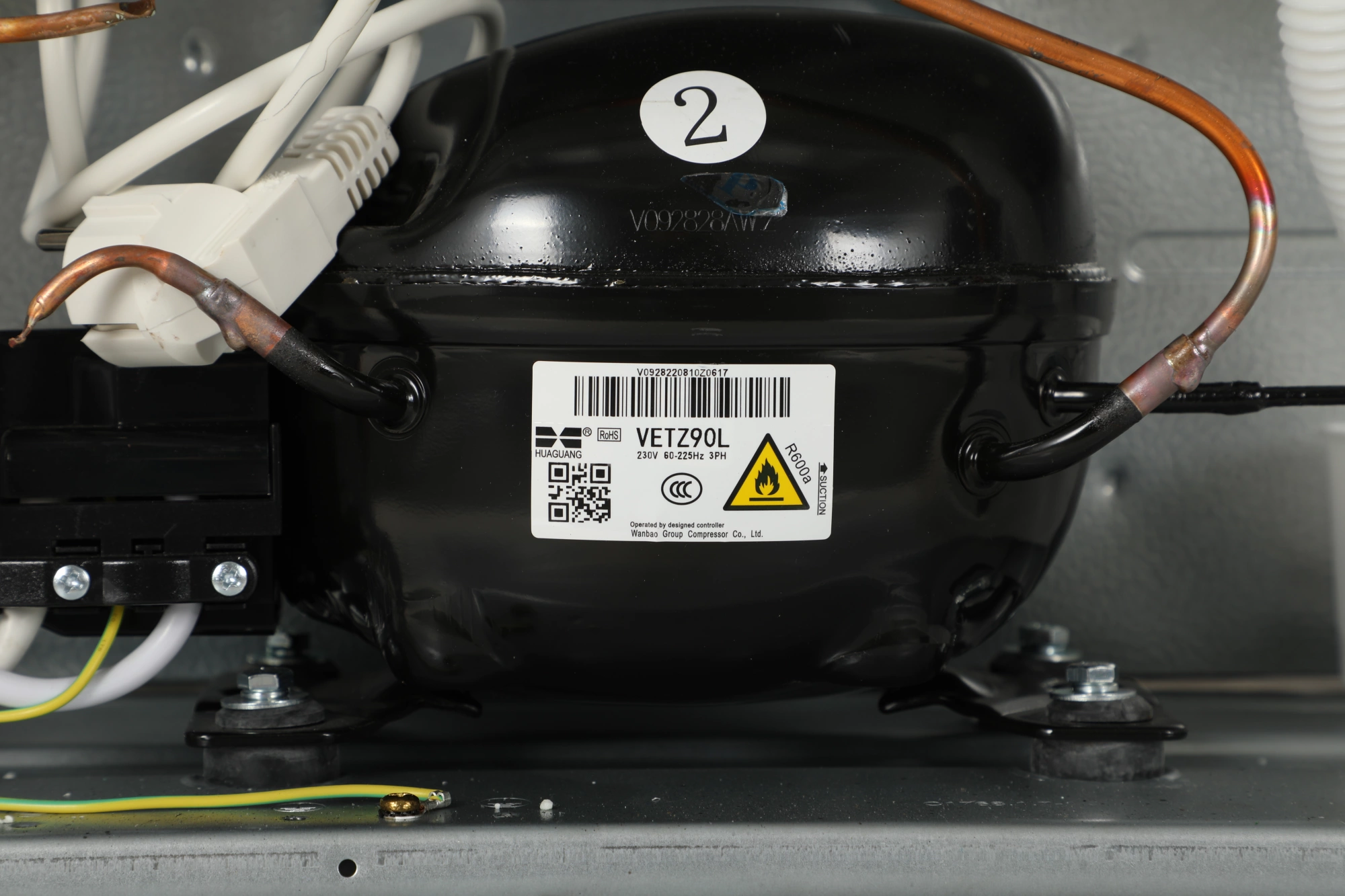 Обе части устройства просторны: нижняя камера имеет 386 л в объёме, а морозильная – 129 л. Этого достаточно, чтобы хранить пищу на большую семью. Для поддержания температуры в приборе используется современный хладагент R600a – он создаёт минимум давления, поэтому производит мало шума. Компрессор работает тихо и требует всего 299 кВт*ч/год, что соответствует классу энергопотребления А+++.
