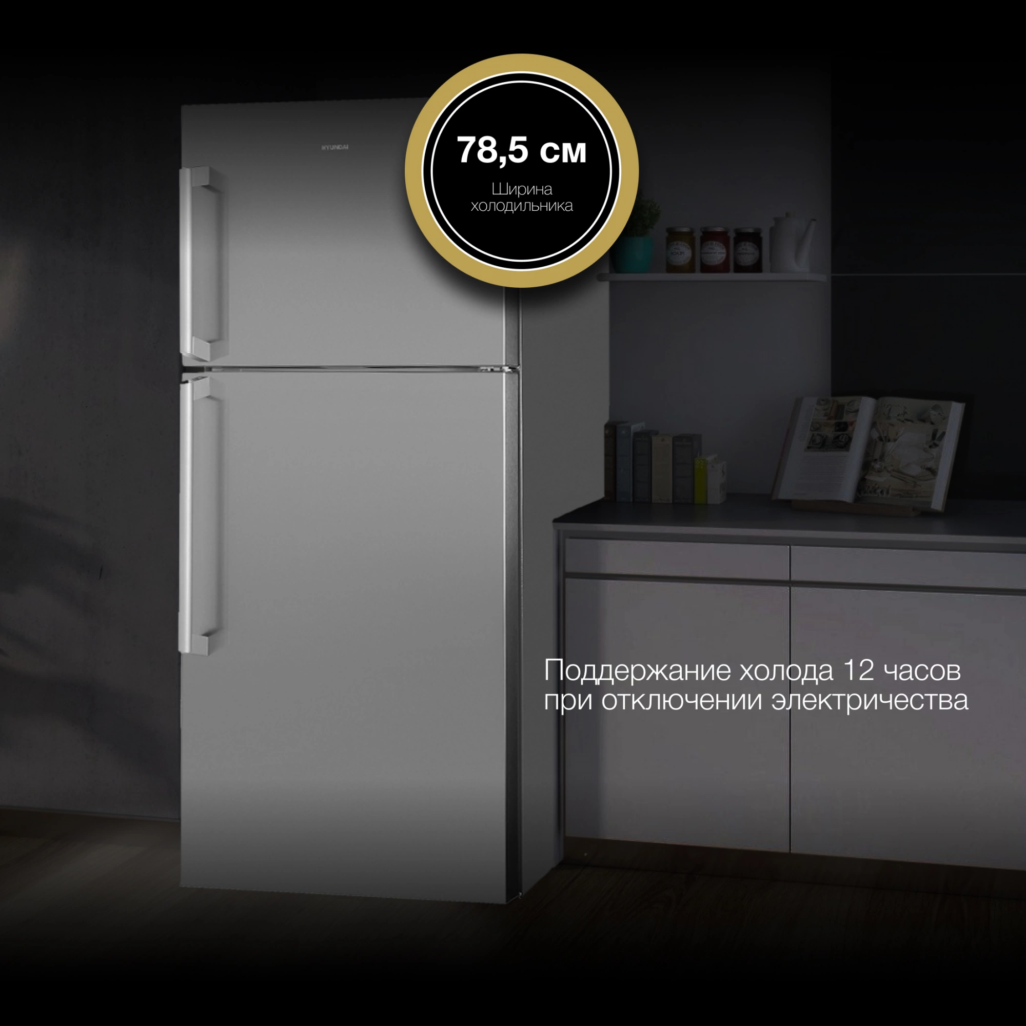 Если Hyundai CT6045FIX остаётся без электричества, еда в нём будет свежей ещё 12 часов. При этом холодильник поддерживает функции суперзаморозки и суперохлаждения, которые дополнительно способствуют поддержанию продуктов свежими, а также помогают сохранить их пользу в первозданном виде.