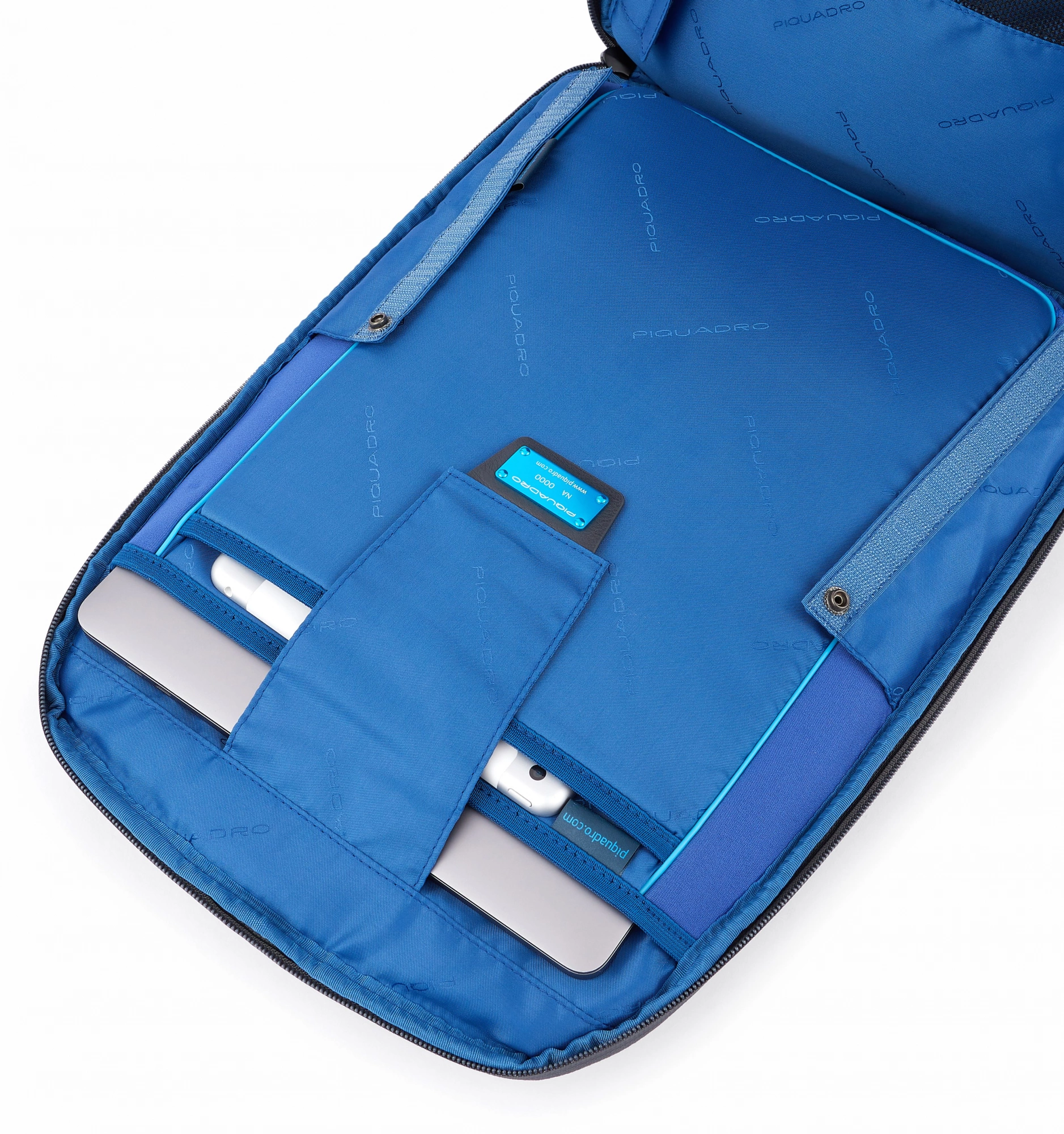 Оборудован защитой от незаконного RFID-сканирования. Имеется специальное отделение для гаджетов, которое вмещает в себя ноутбук до 15,6 дюймов и планшетный компьютер до 11 дюймов.