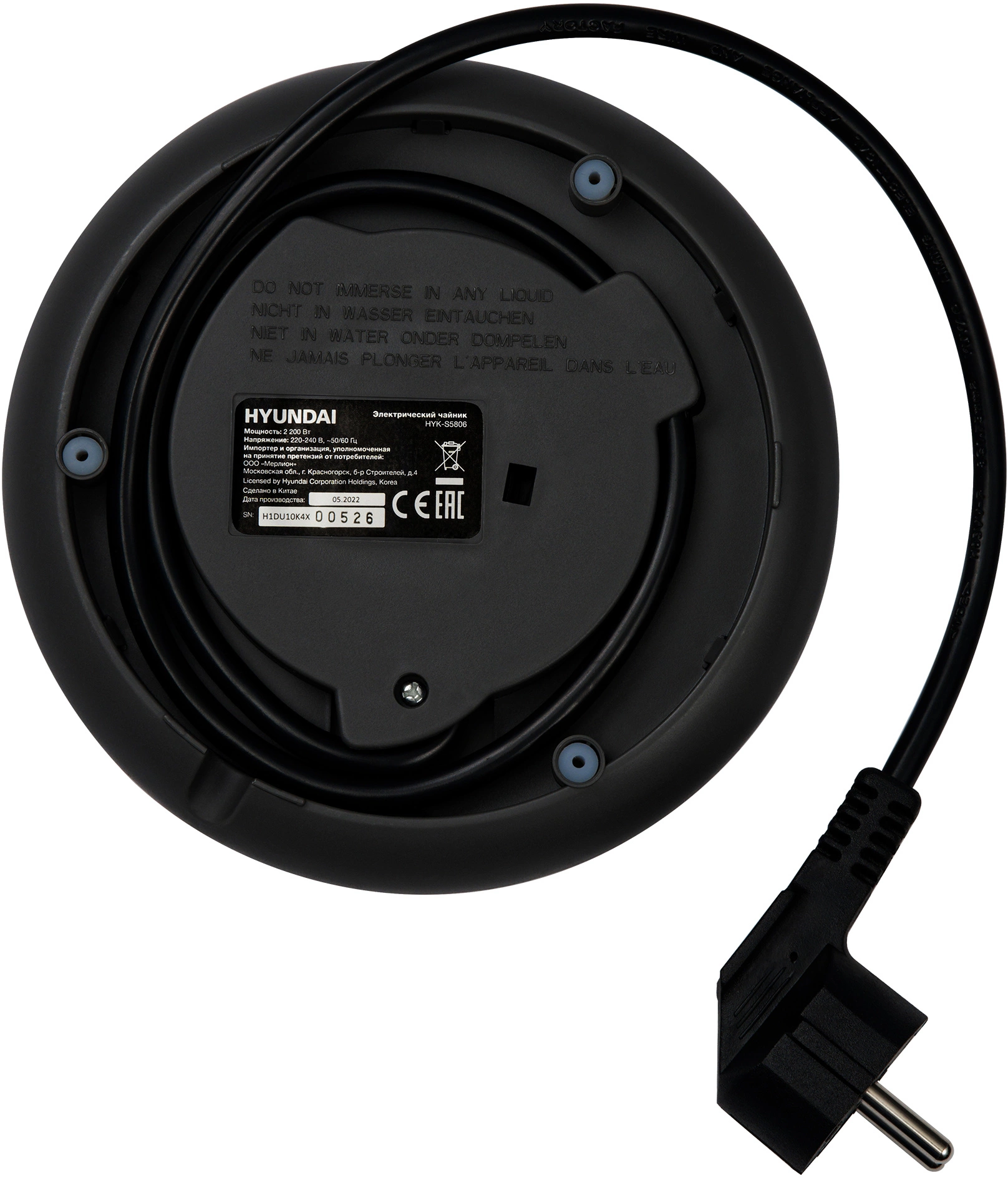 Для удобства на боковую стенку чайника вынесены отметки, по которым удобно судить, насколько он наполнен, без открытия крышки. Она, в отличие от многих аналогов, полностью снимается и обеспечивает быстрое заполнение Hyundai HYK-S5806.