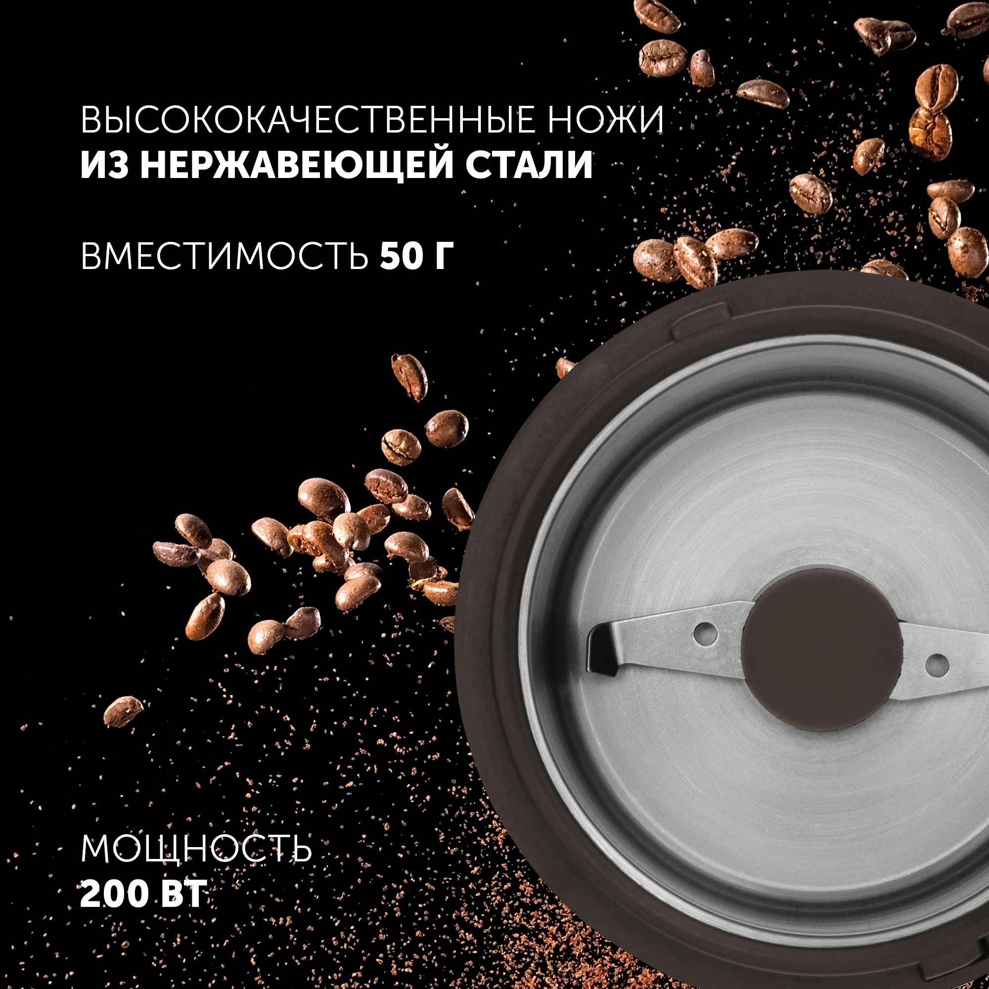 200Вт сист.помол.:ротац.нож вместим.:50гр коричнев...