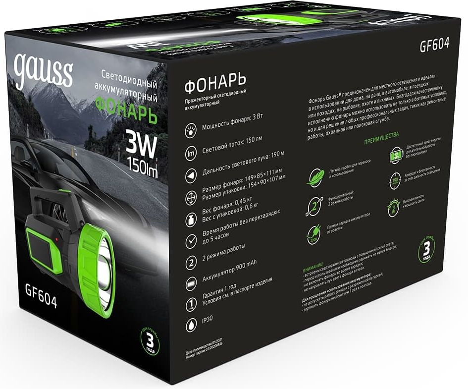 фонарь, сетевой шнур для зарядки от розетки 0.6 м, ремень для переноски 1 м, паспорт
