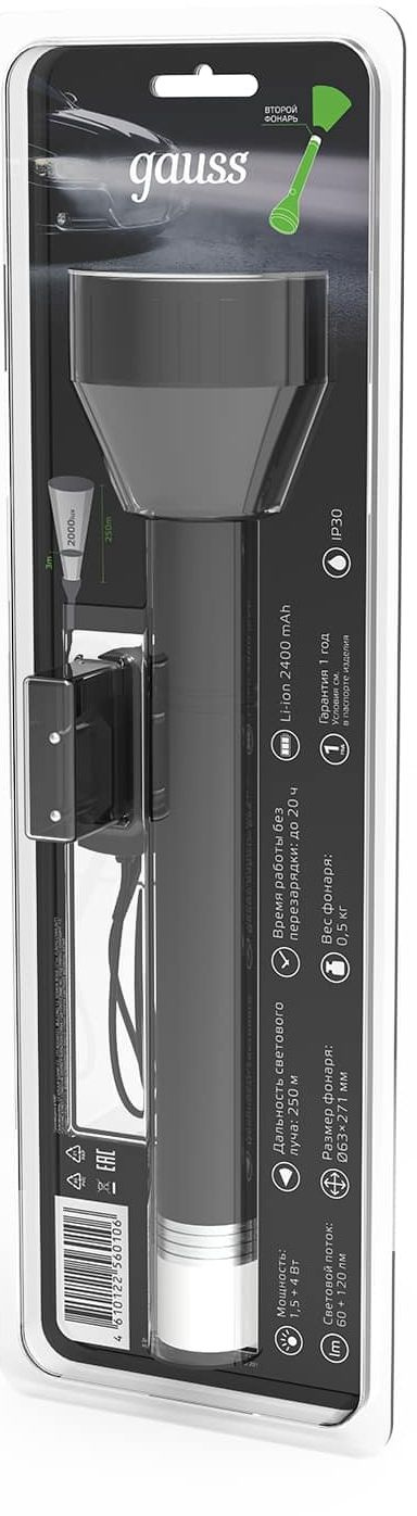 фонарь, адаптер для зарядки аккумулятора, паспорт