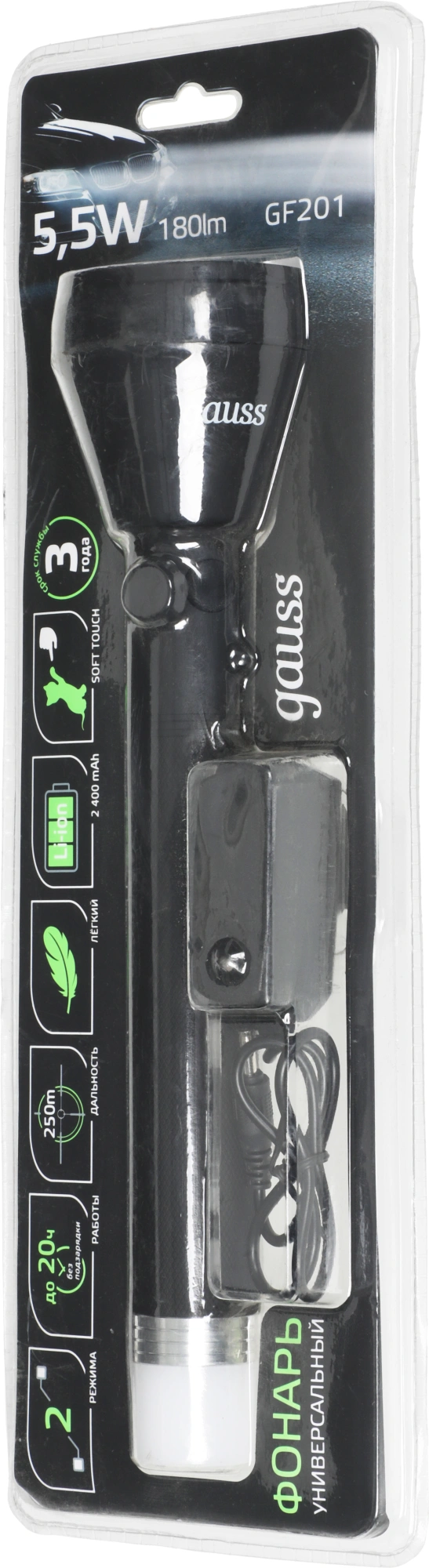 фонарь, адаптер для зарядки аккумулятора, паспорт