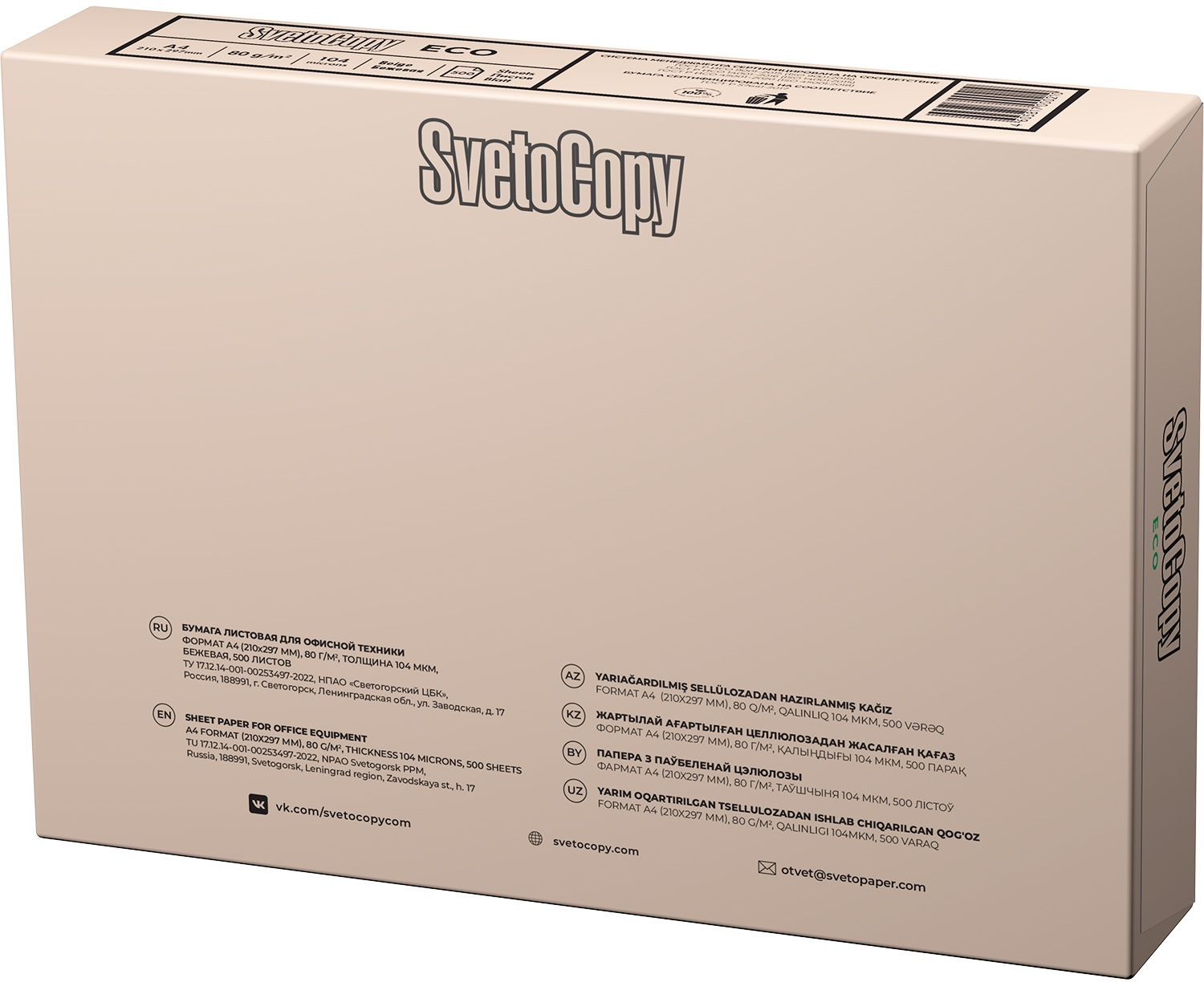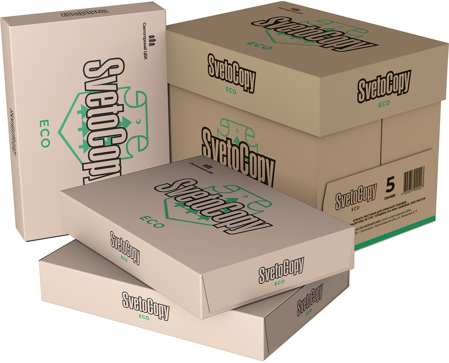 Универсальная офисная бумага из полубеленой целлюлозы.
