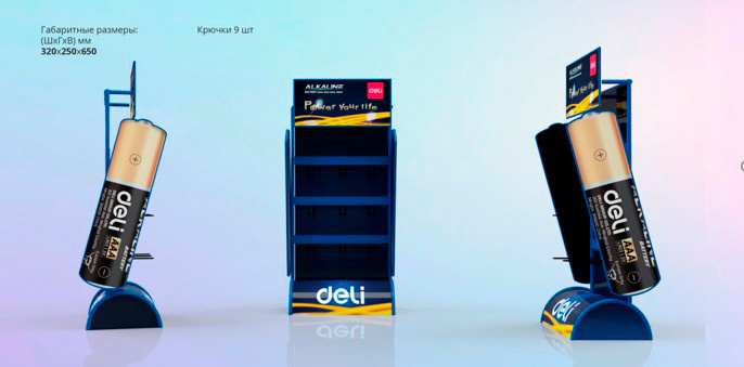 Дисплей под батарейки Deli 320x250x650mm 9 крючков Приз