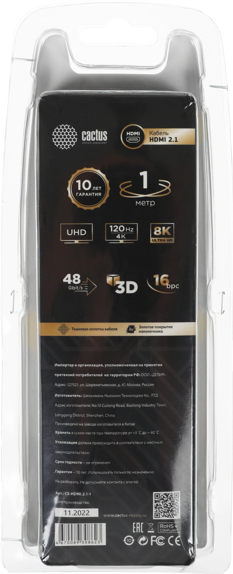 Кабель аудио-видео Cactus CS-HDMI.2.1-1