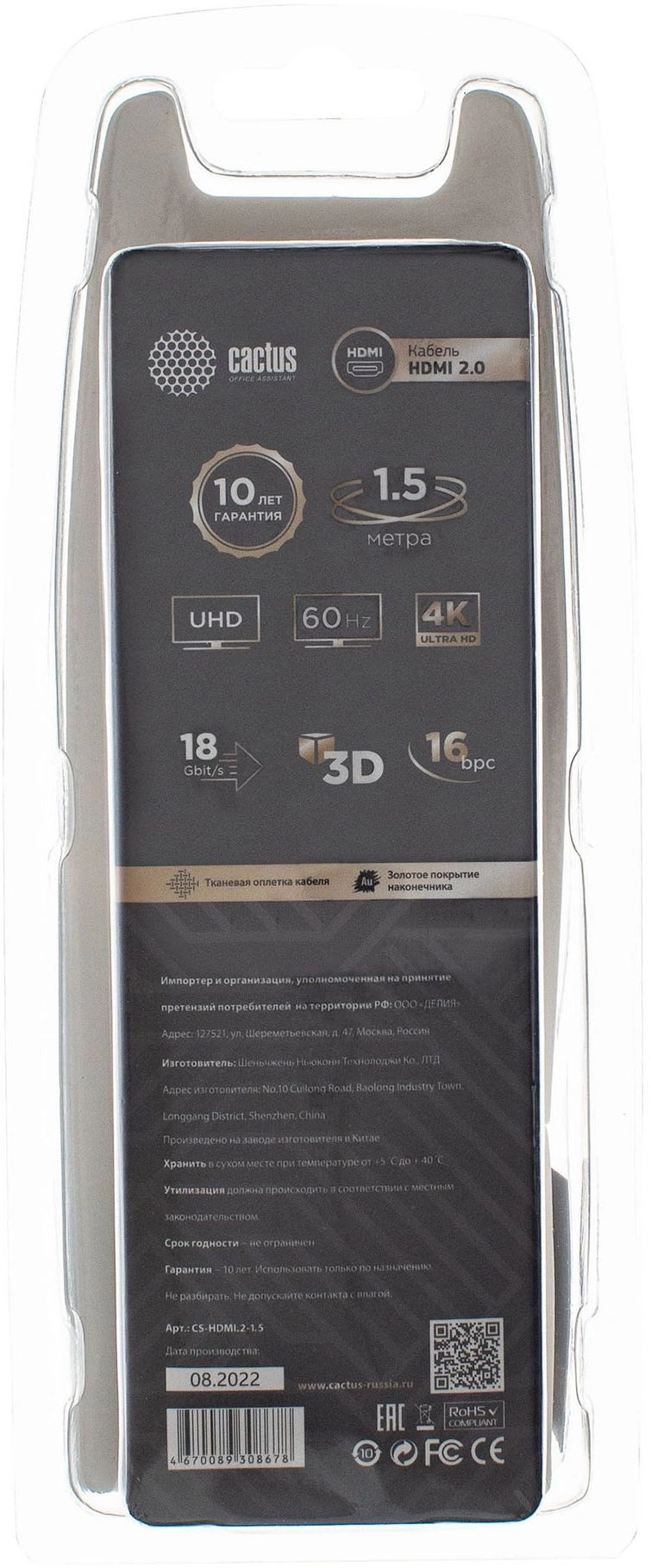 Кабель аудио-видео Cactus CS-HDMI.2-1.5