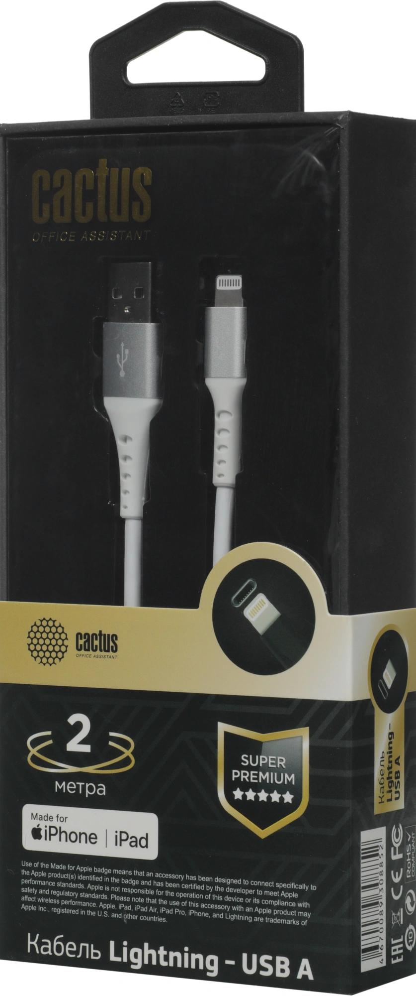 USB (m)-Lightning (m) 2м белый блистер