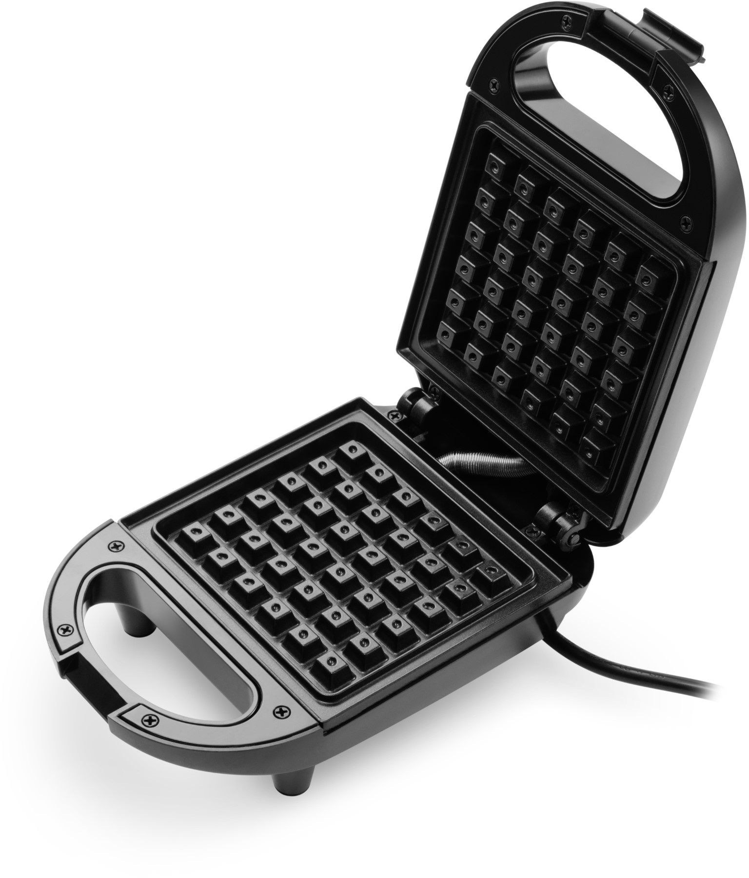 Нагревательные части прибора имеют стандартную прямоугольную форму, а поверх них установлены пластины в форме вафель. Они выполнены из антипригарного материала, чтобы без масла обеспечивать идеальную корочку и степень приготовления любого выбранного блюда.