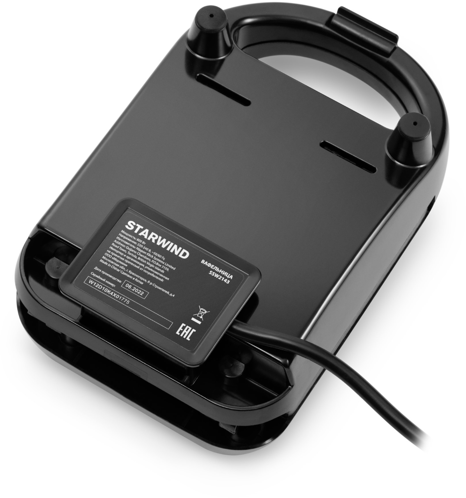 Корпус Starwind SSW2143 выполнен из бакелита и пластика. Первым материалом отделаны все части прибора, которые не должны нагреваться, потому что он обладает соответствующими изотермическими свойствами. Второй обеспечивает долгое удержание тепла и прочность. Пластик при термической обработке почти не нагревается.