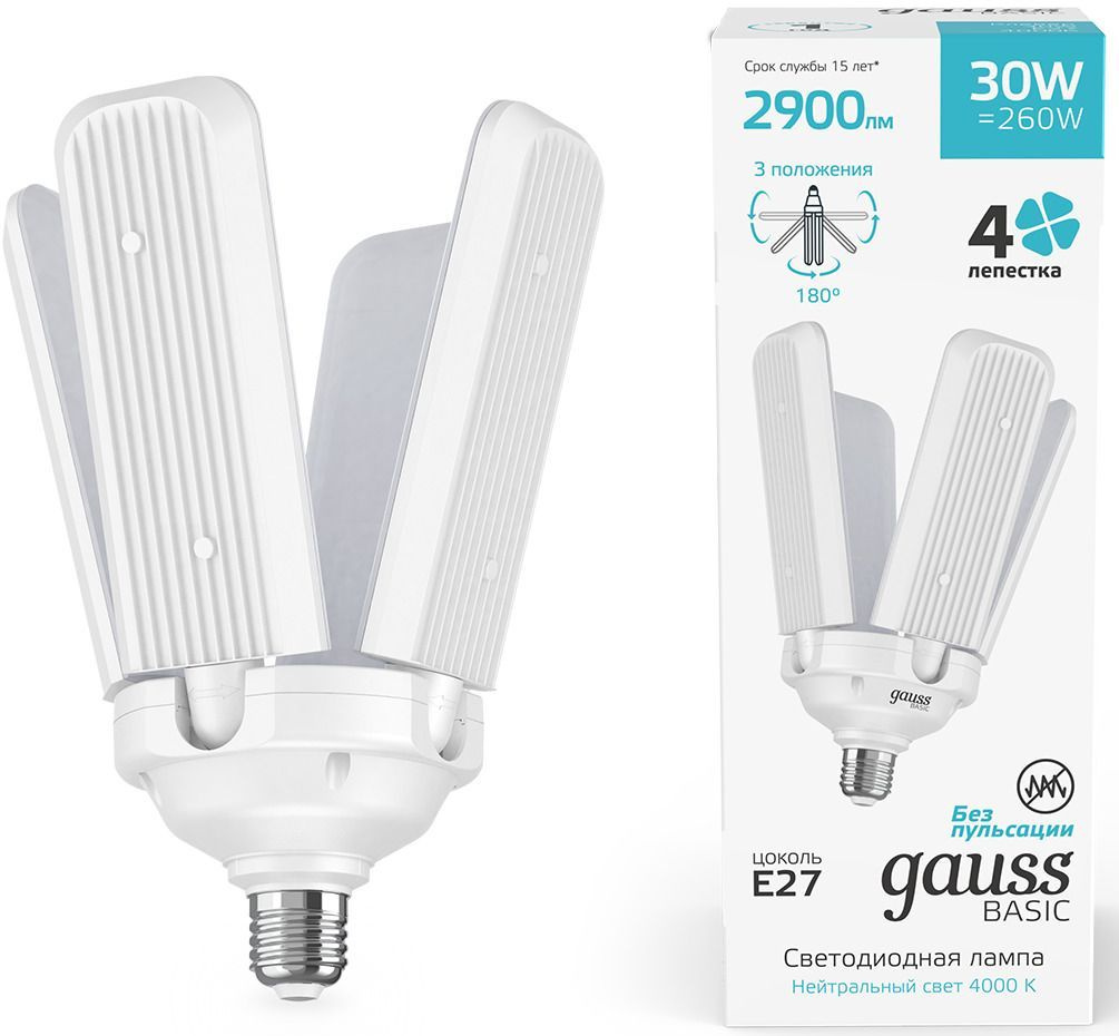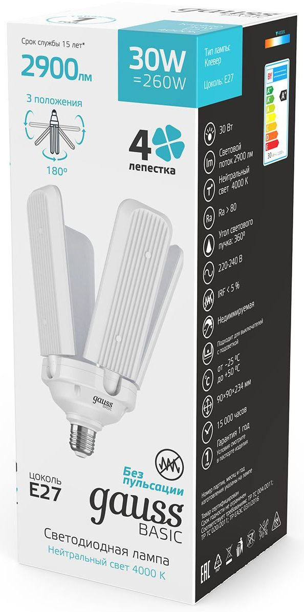 30Вт цок.:E27 клевер 220B св.свеч.бел.нейт. (упак...