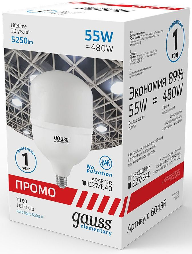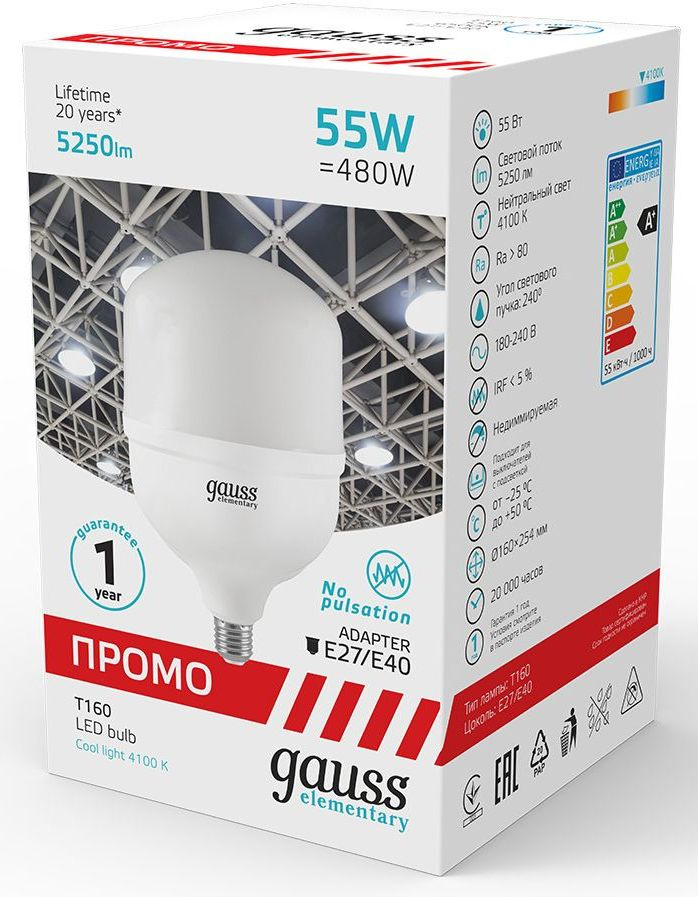 55Вт цок.:E27/E40 цилин. 220B св.свеч.бел.хол. (у...