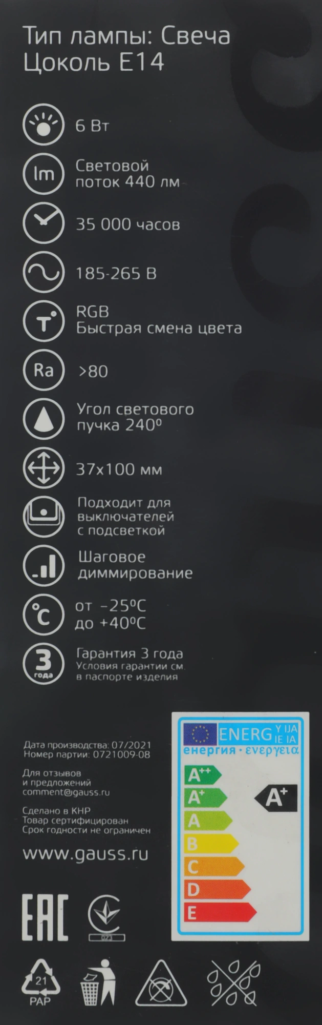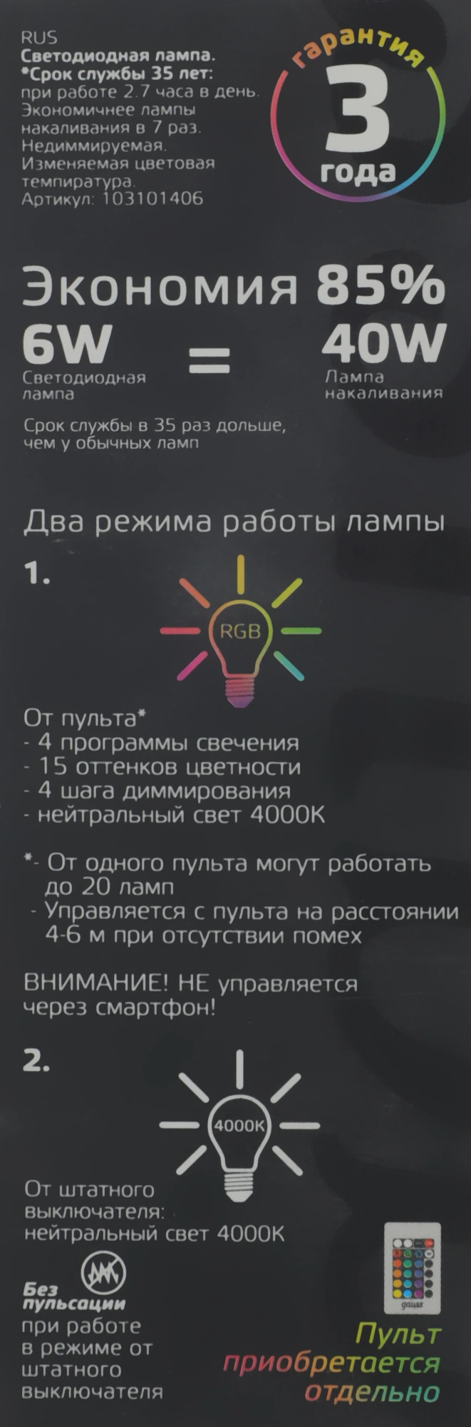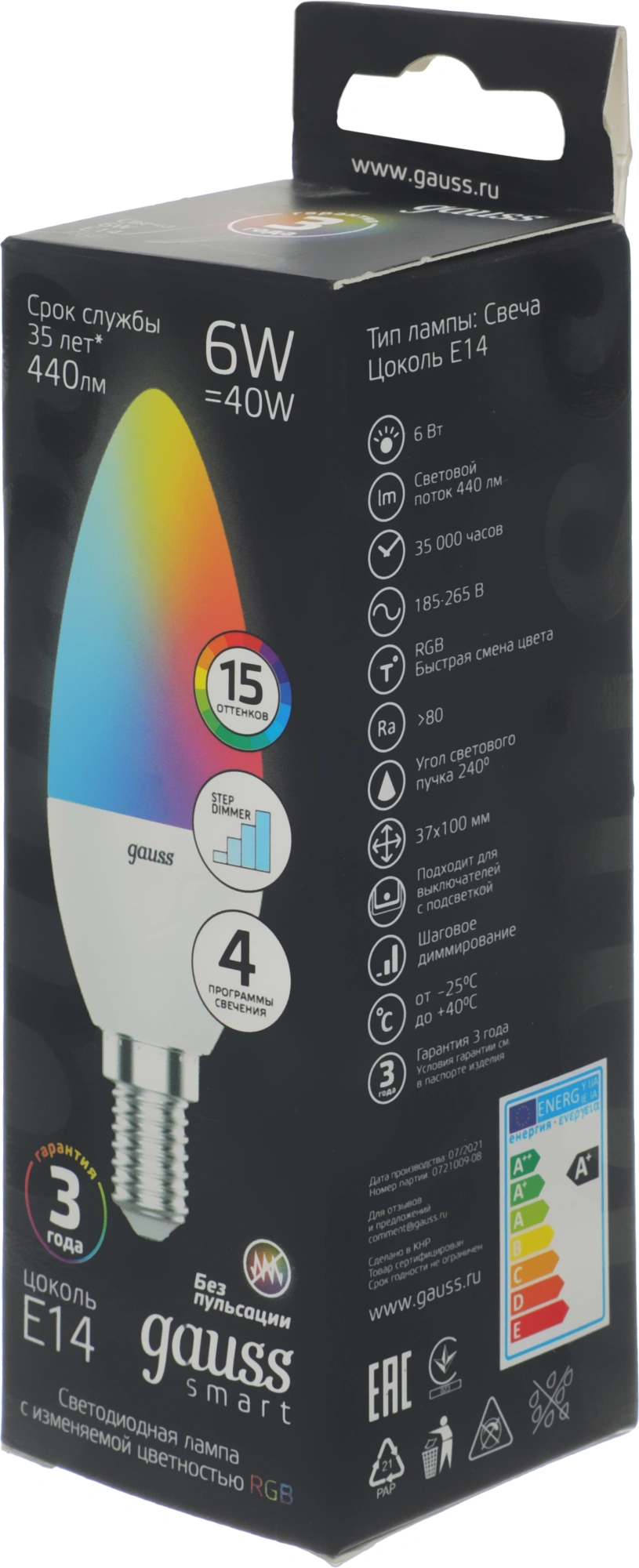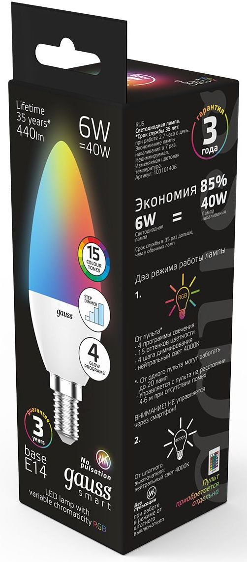 6Вт цок.:E14 свеча 220B св.свеч.RGB (упак.:1шт)