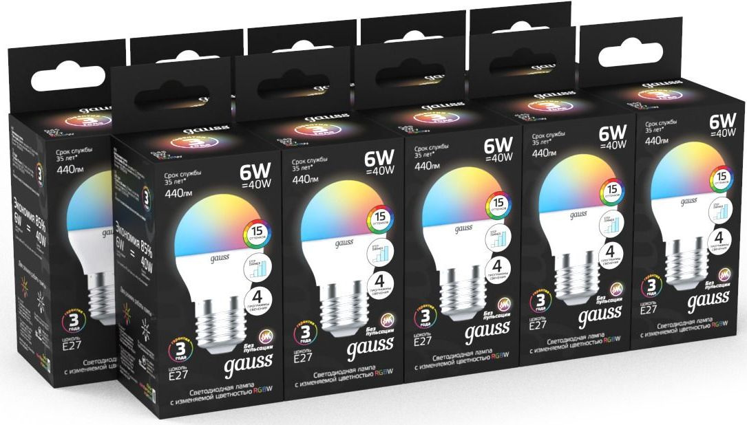 6Вт цок.:G45 шар 175B св.свеч.RGB (упак.:1шт)