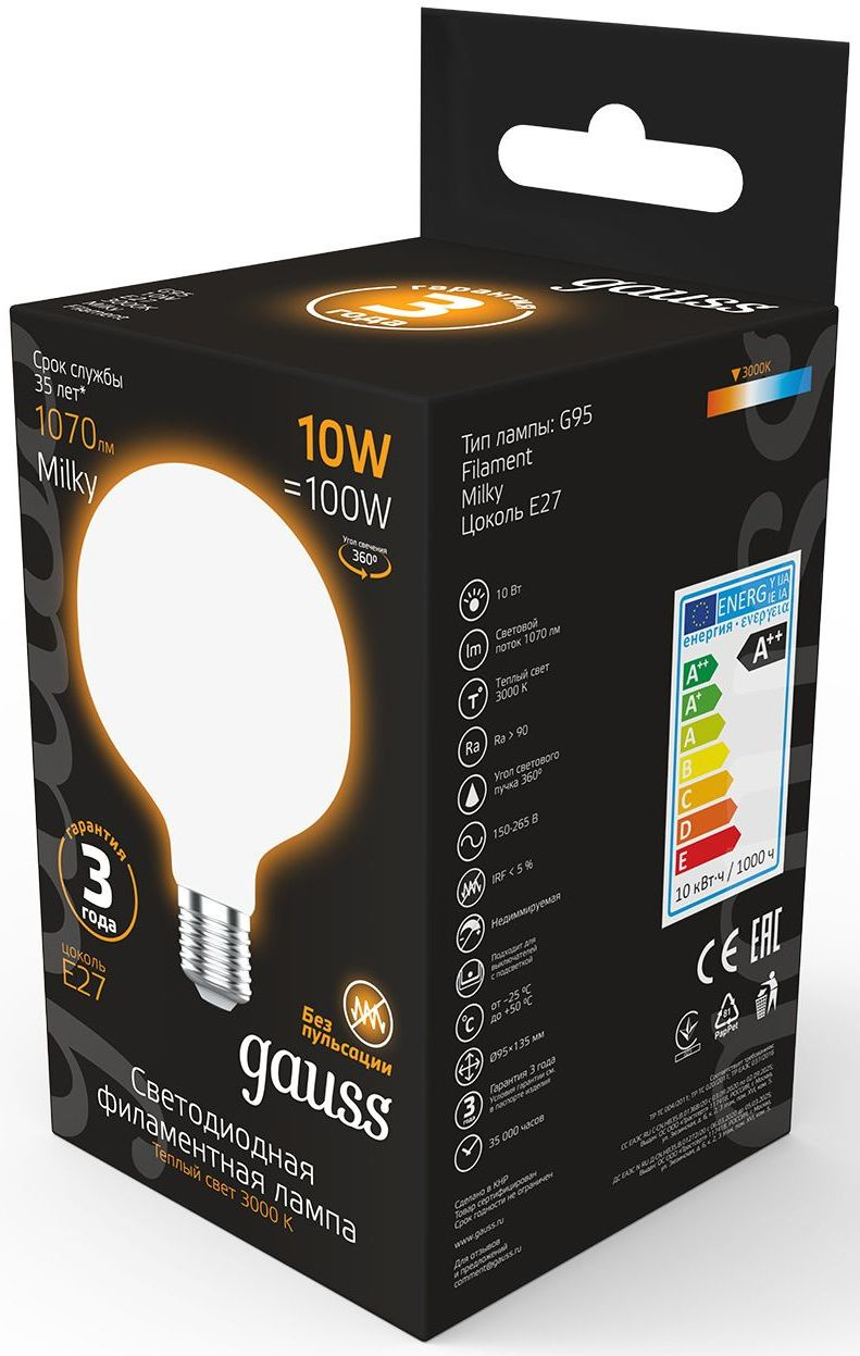 10Вт цок.:E27 шар 220B св.свеч.бел.теп. (упак.:1ш...