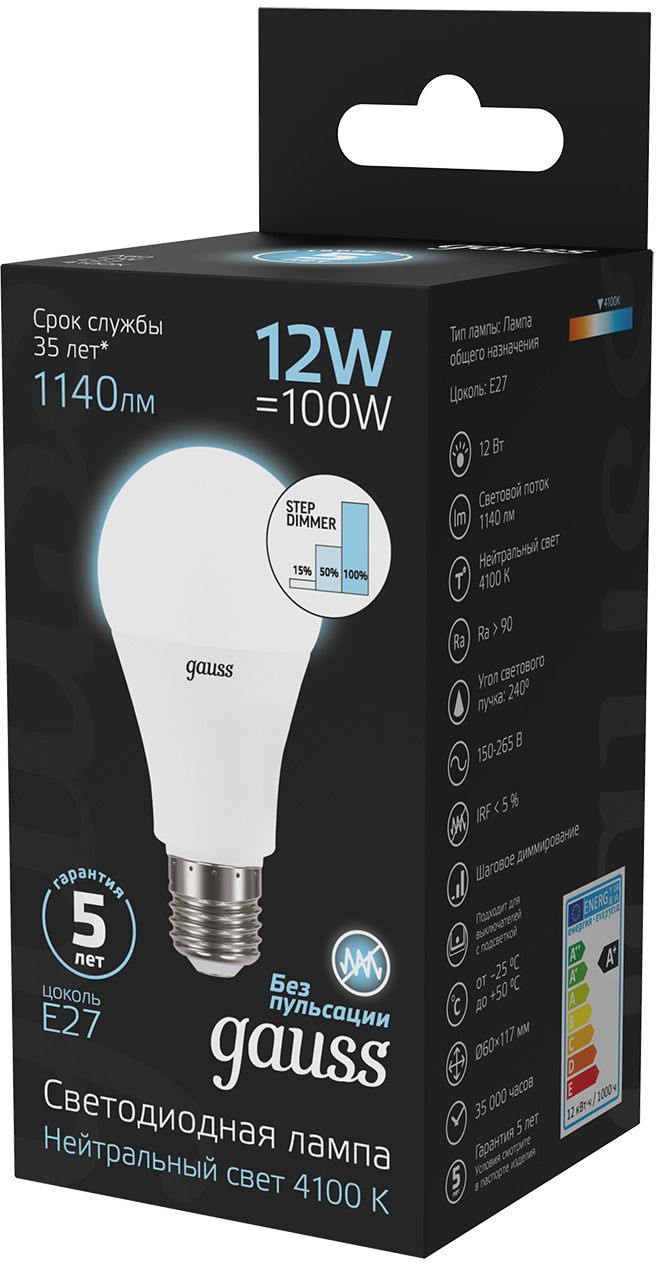 12Вт цок.:E27 груша 150B св.свеч.бел.нейт. грушев...