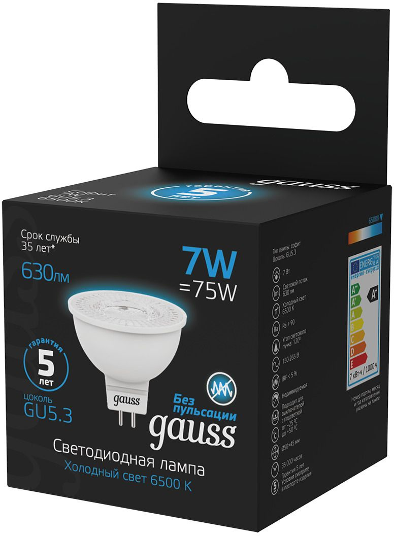 7Вт цок.:GU5.3 рефлек. 150B св.свеч.бел.хол. MR16...