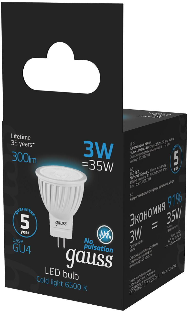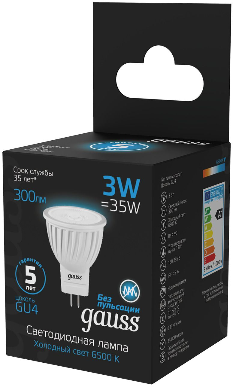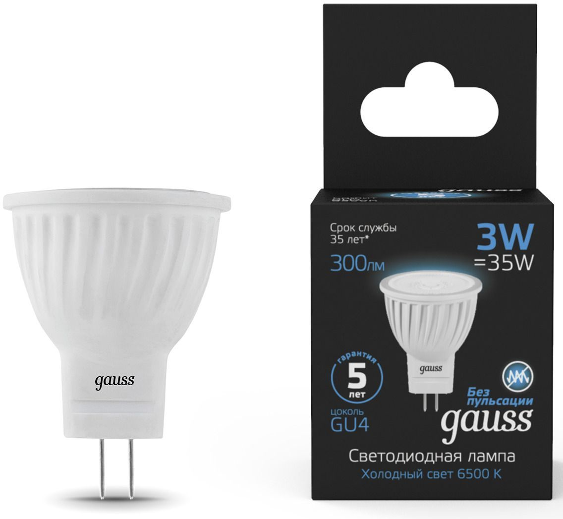 3Вт цок.:GU4 рефлек. 220B св.свеч.бел.хол. (упак....