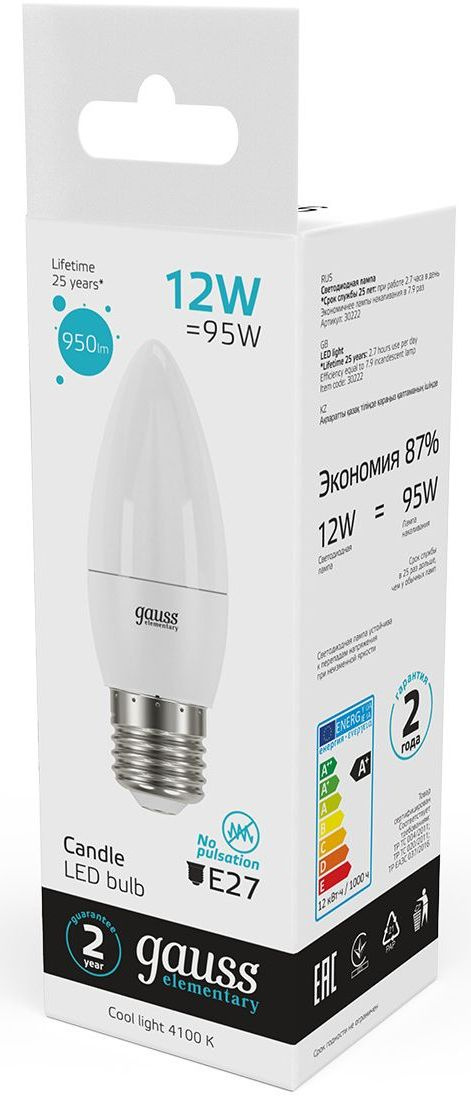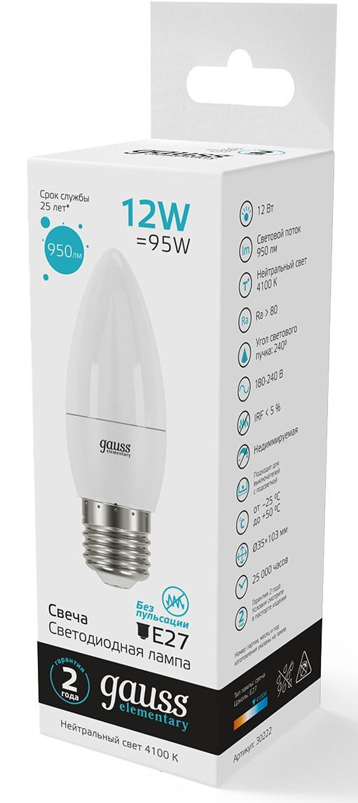 12Вт цок.:E27 свеча 220B св.свеч.бел.нейт. (упак....