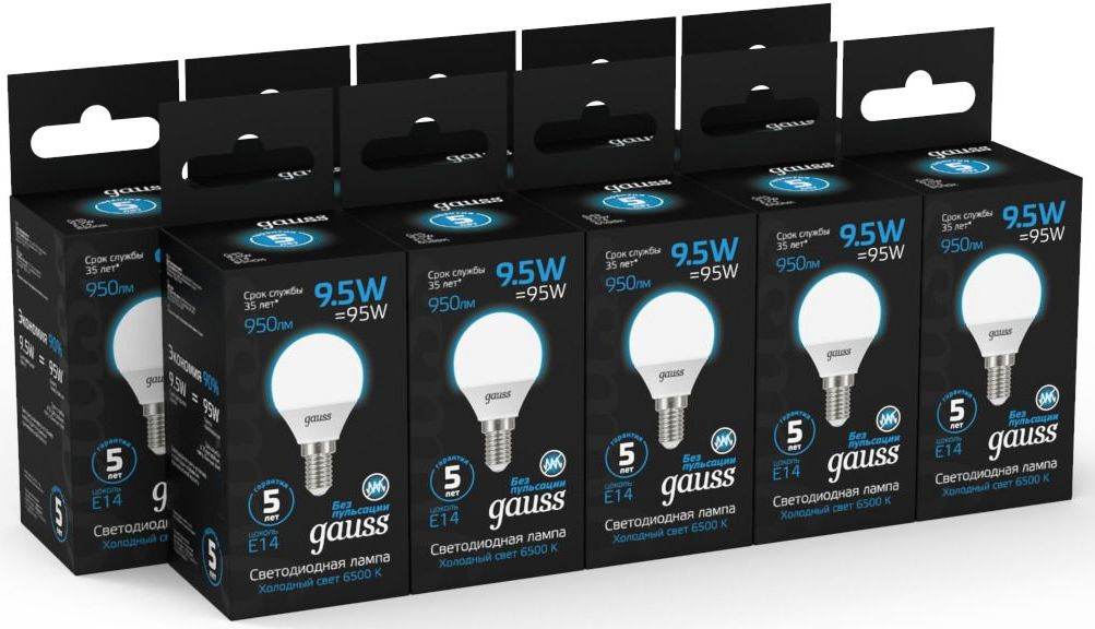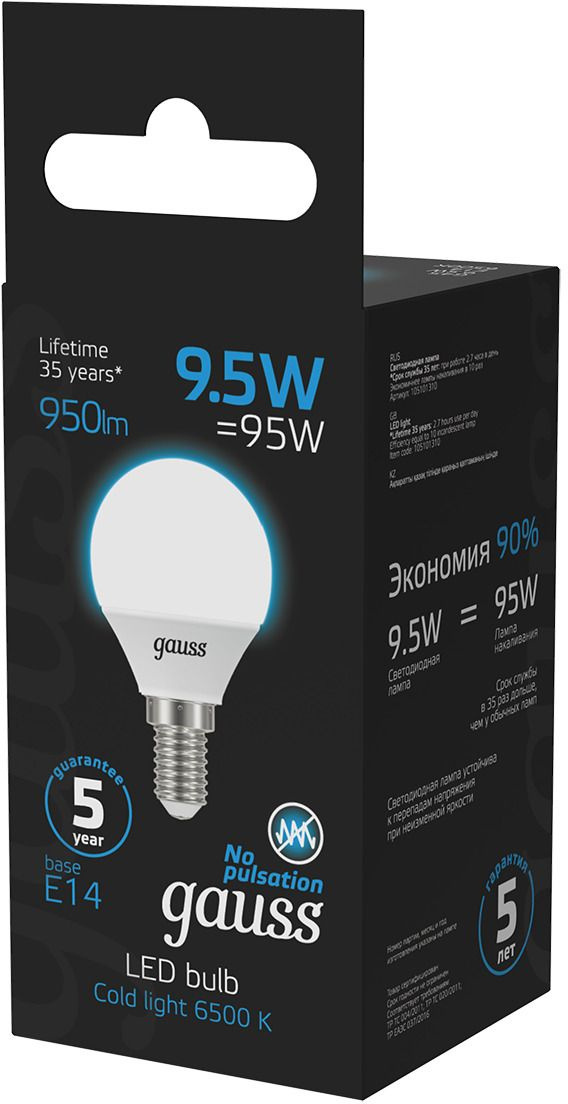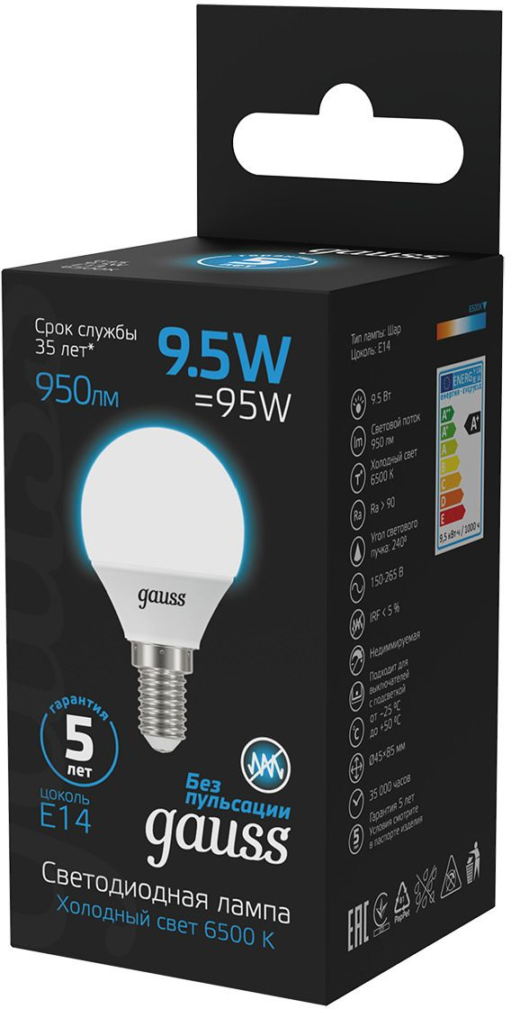 9.5Вт цок.:E14 шар 220B св.свеч.бел.хол. (упак.:1...