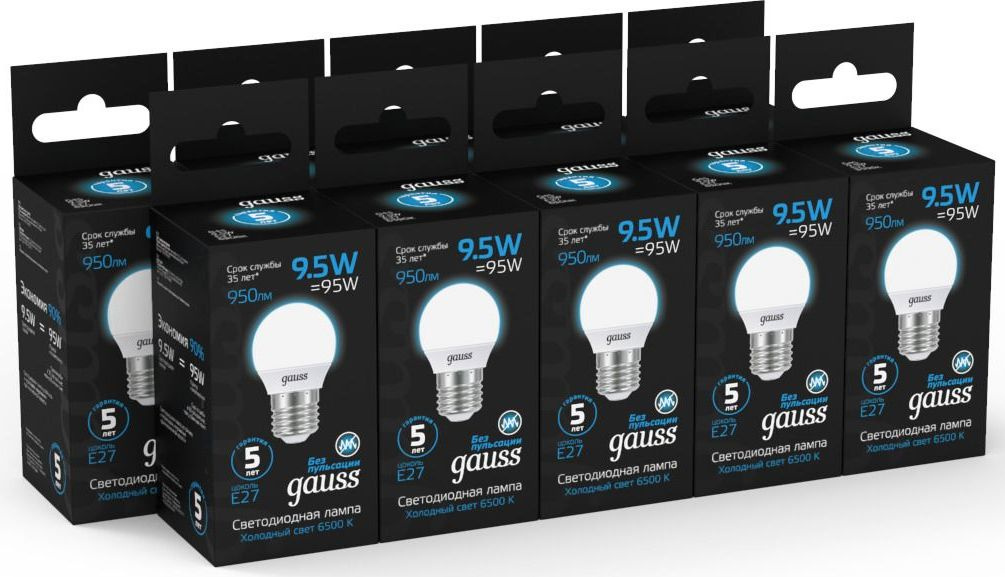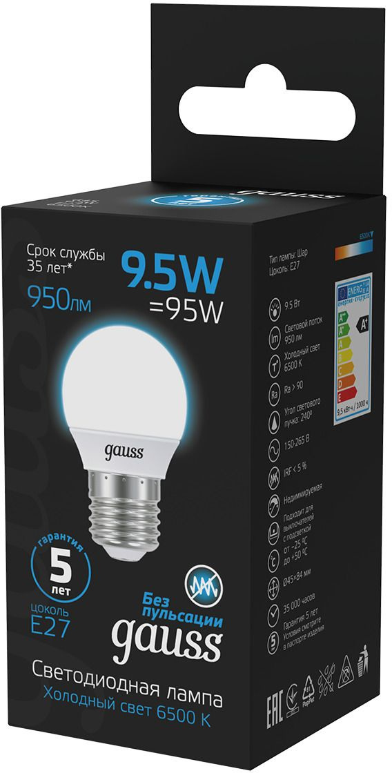 9.5Вт цок.:E27 шар 220B св.свеч.бел.хол. (упак.:1...