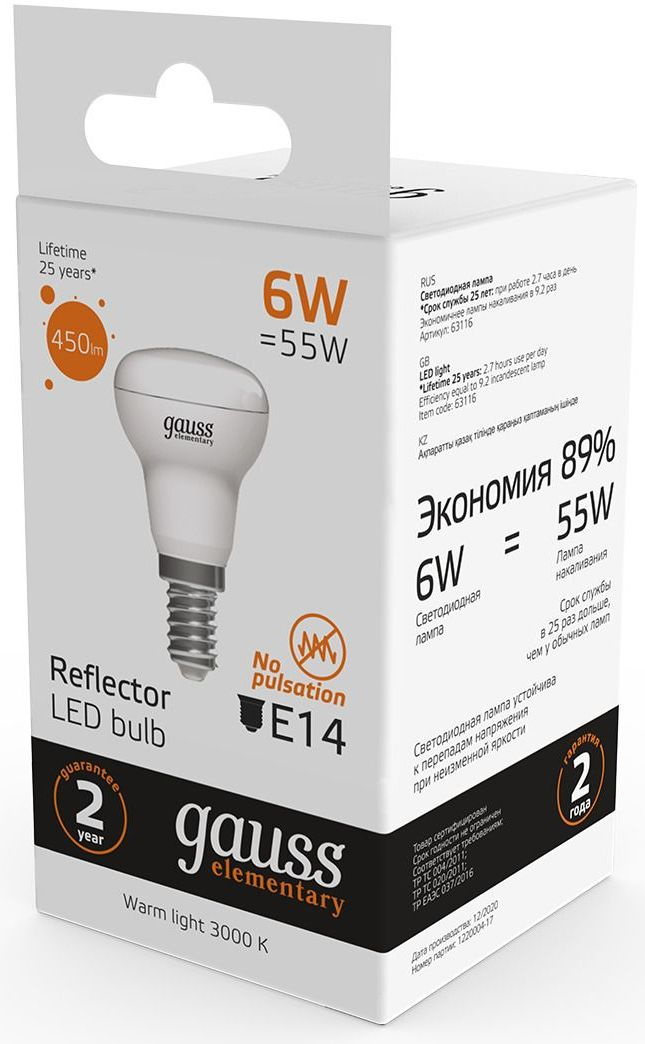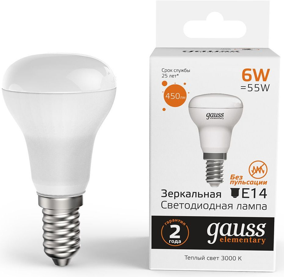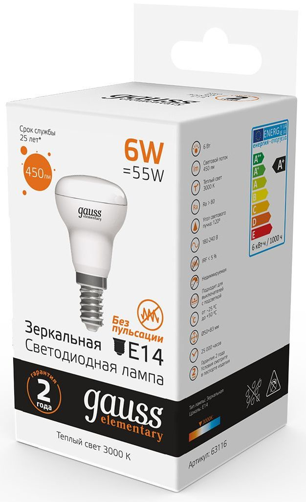 6Вт цок.:E14 рефлек. 220B св.свеч.бел.теп. (упак....