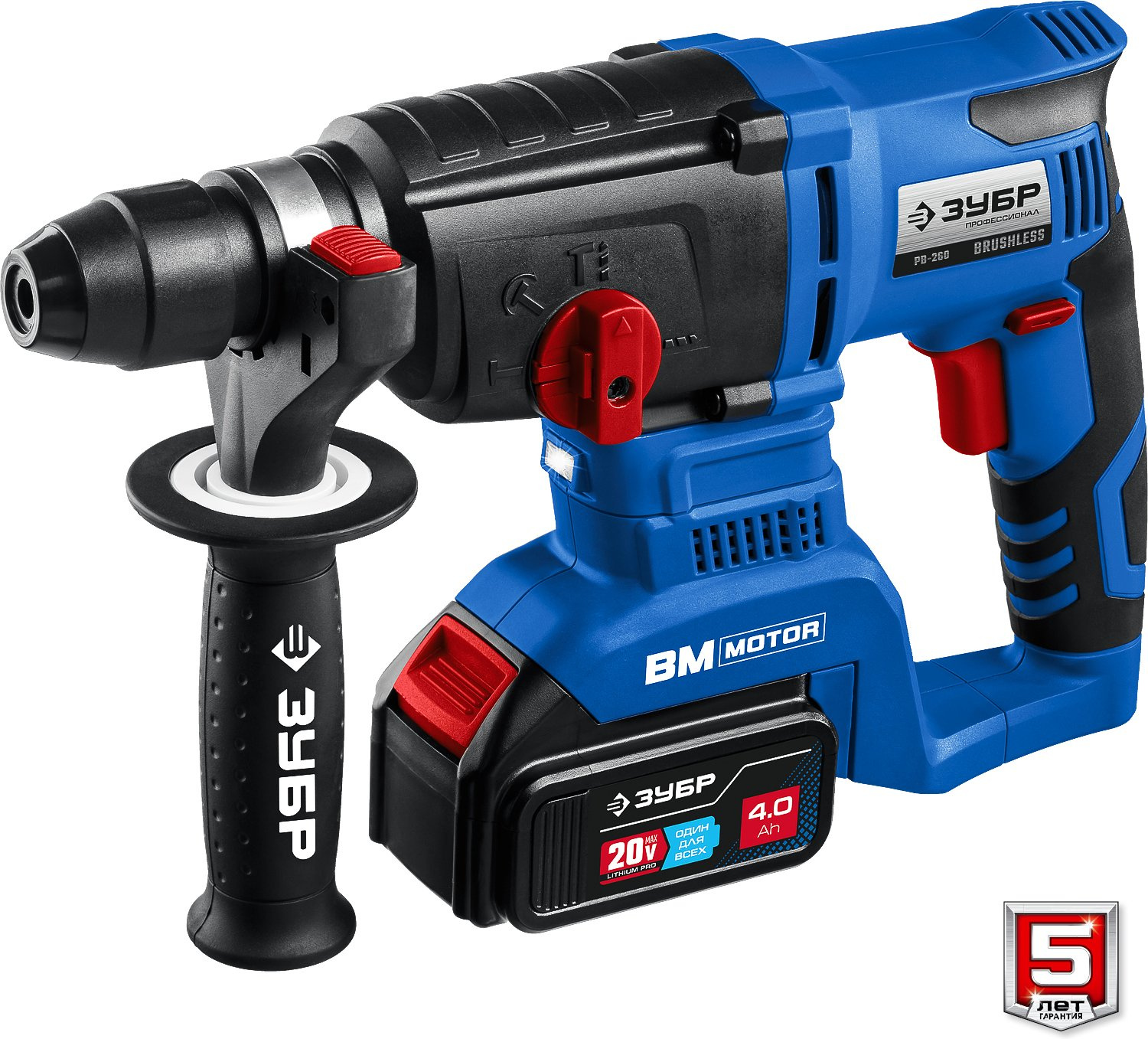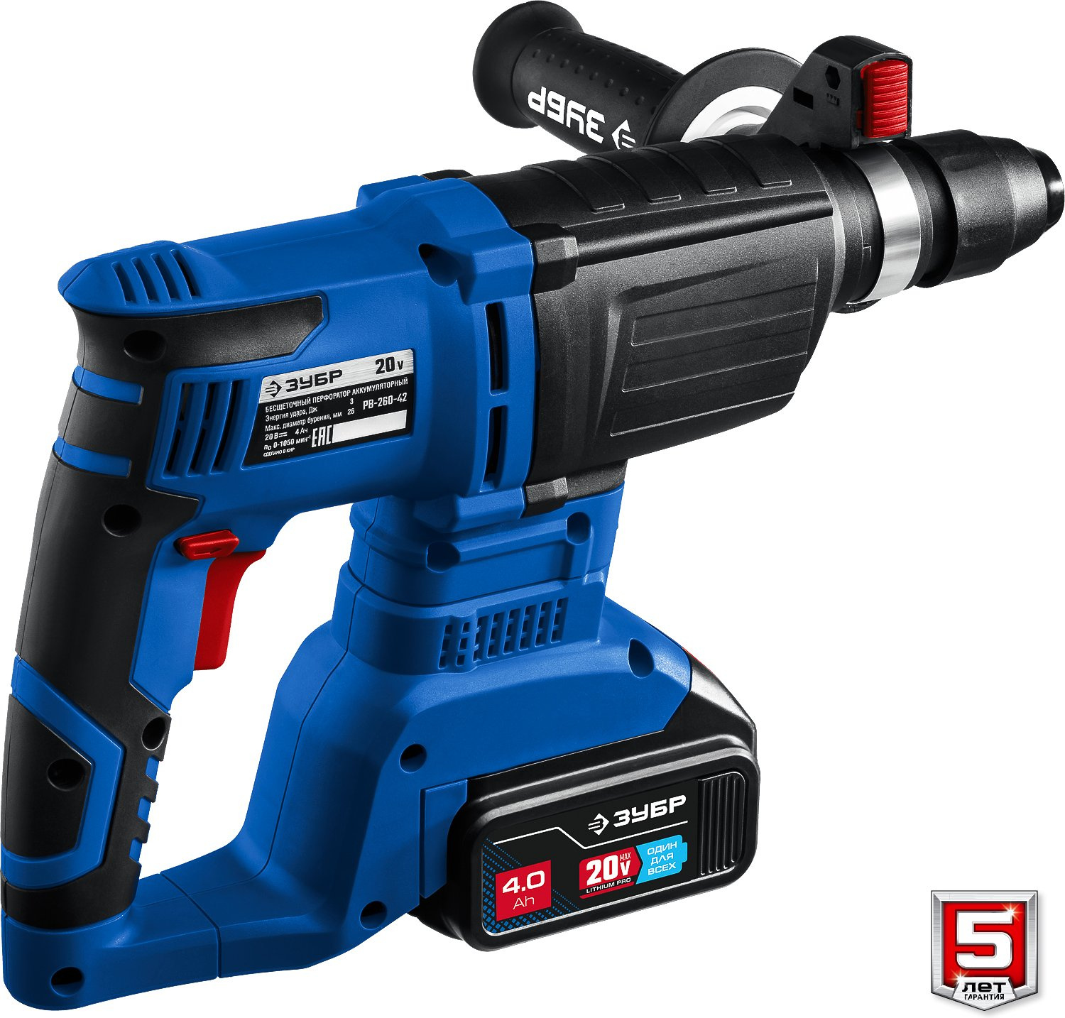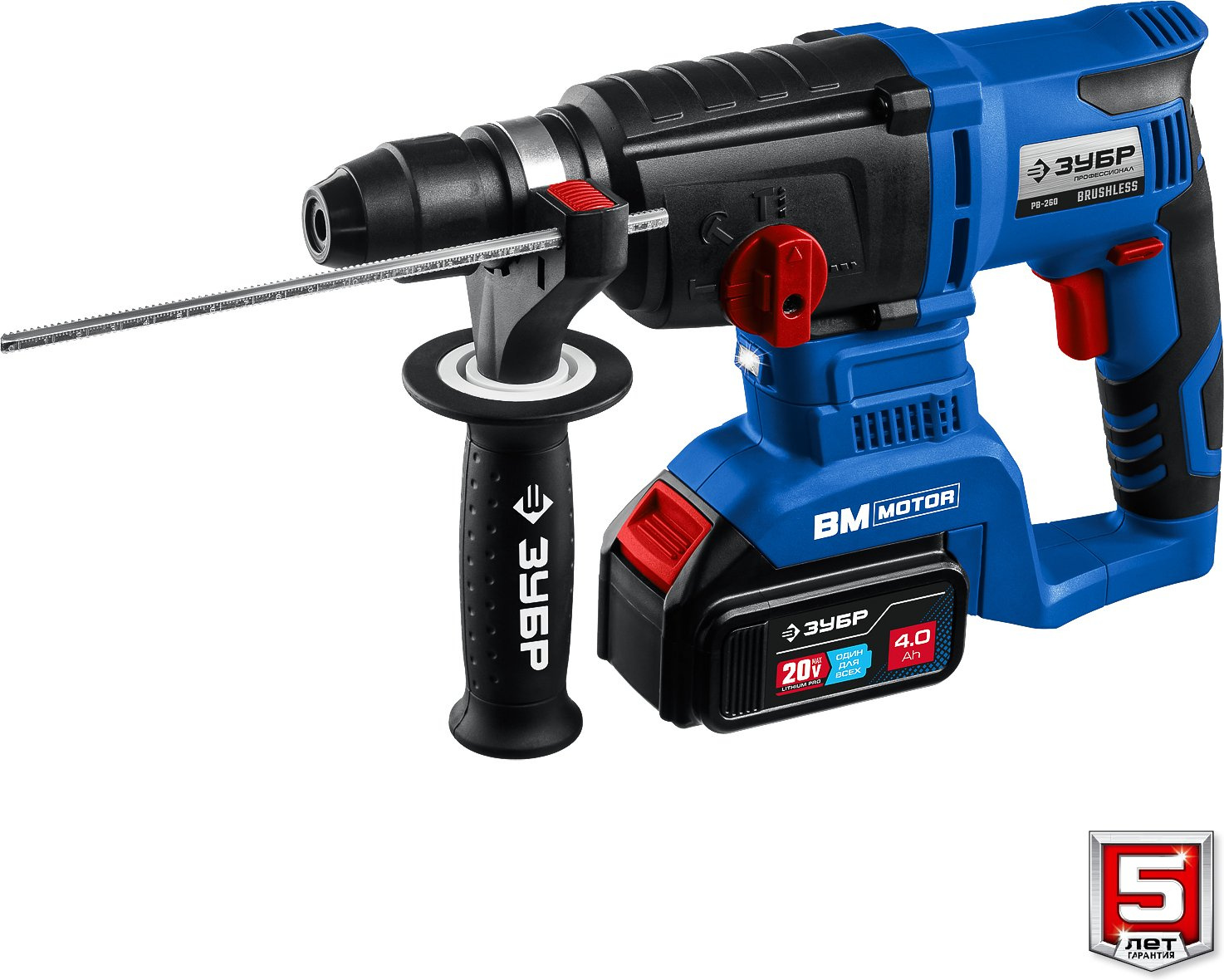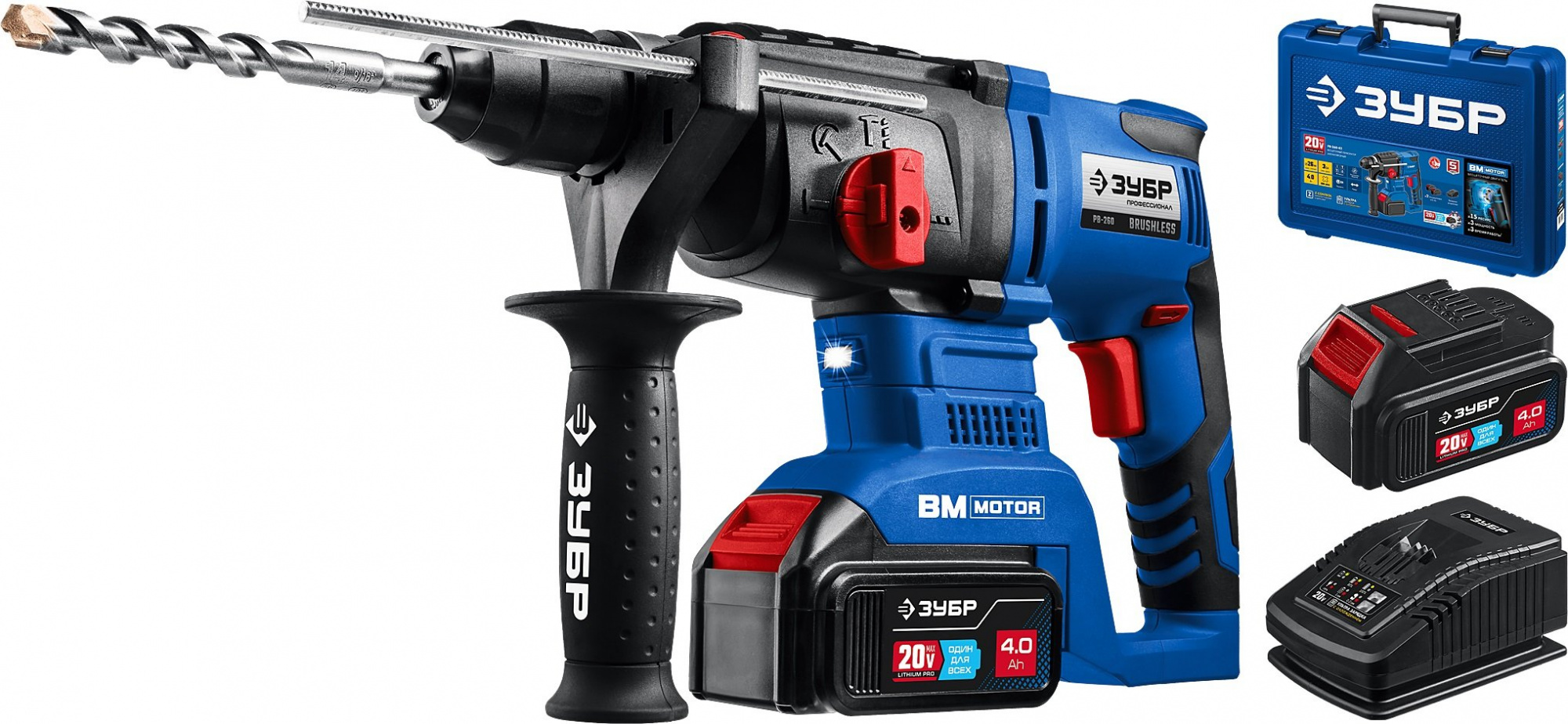 Перфоратор, аккумулятор - 2 шт.; зарядное устройство, рукоятка дополнительная, глубиномер, смазка для бура, кейс, руководство по эксплуатации.