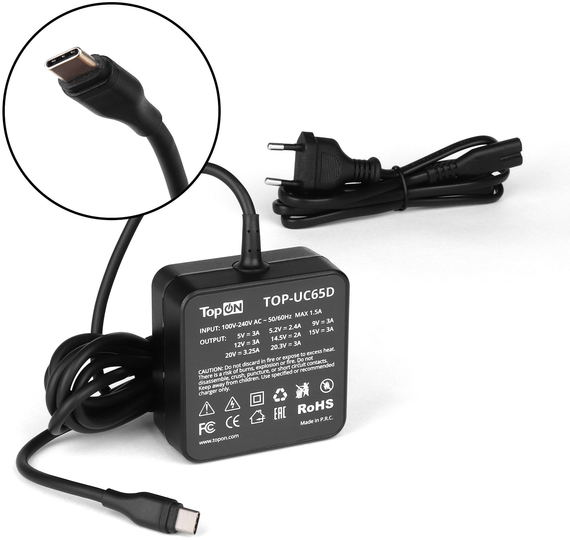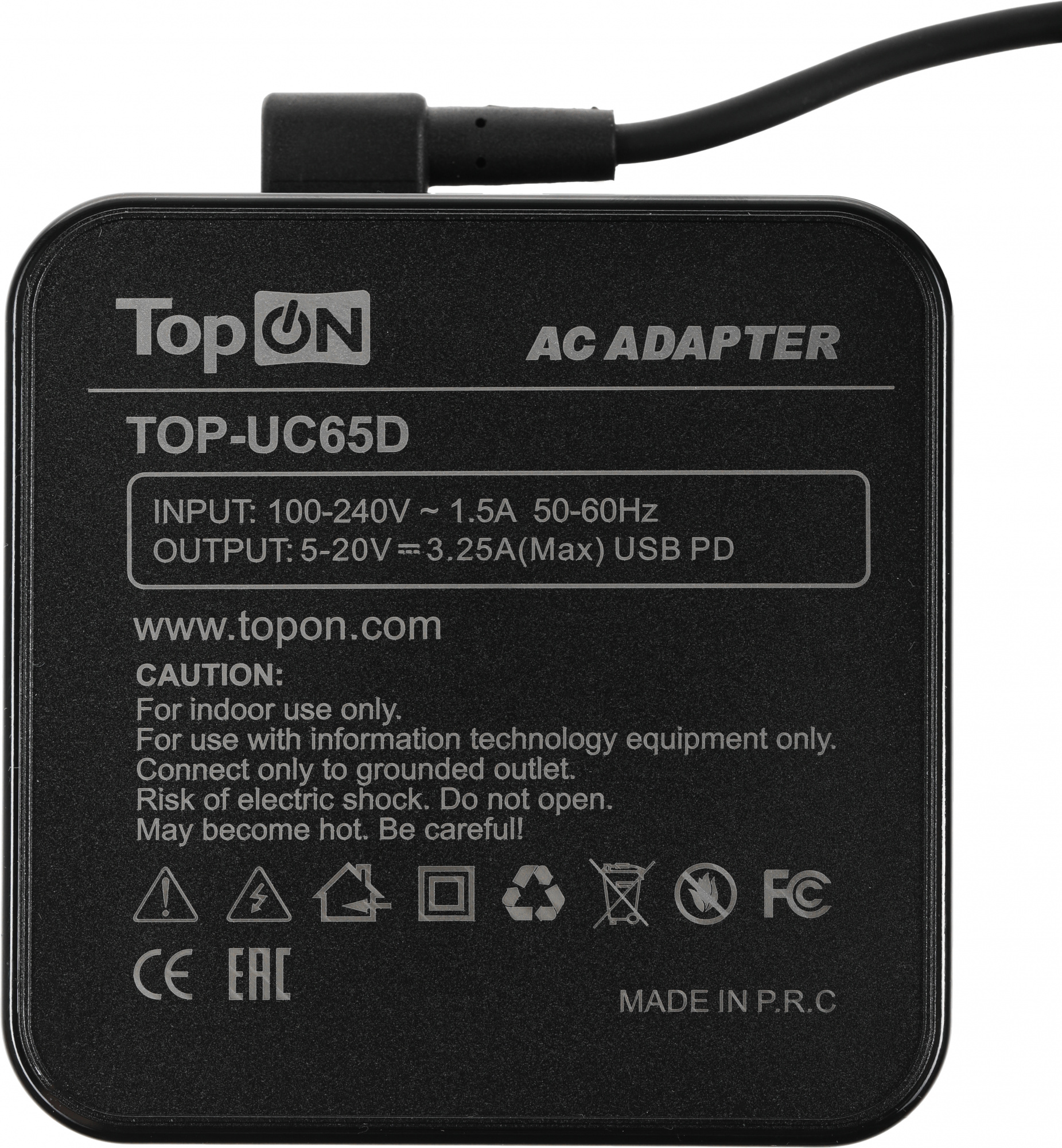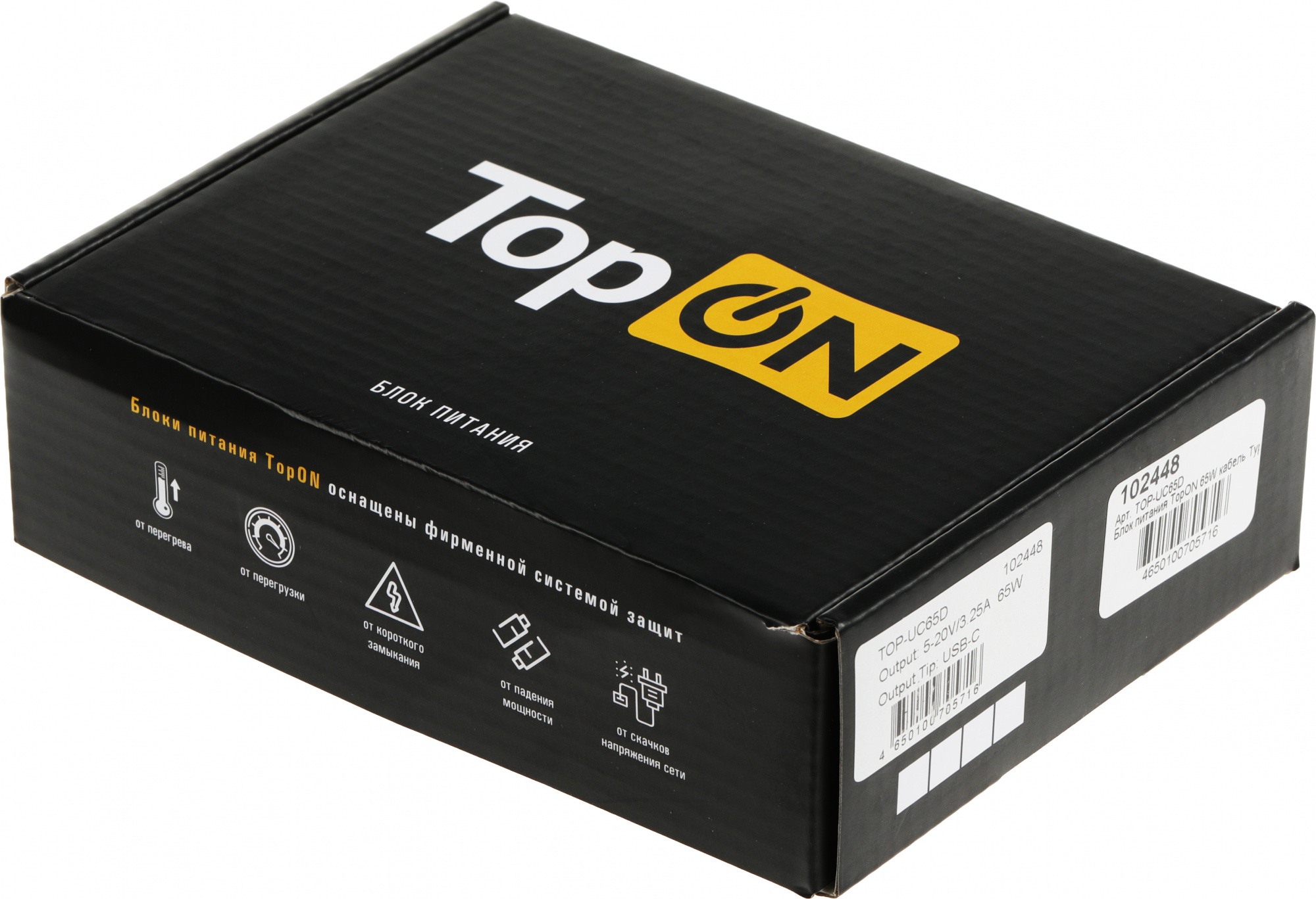 Блок питания TopON 65W кабель Type-C, Power Delivery, TOP-UC65D